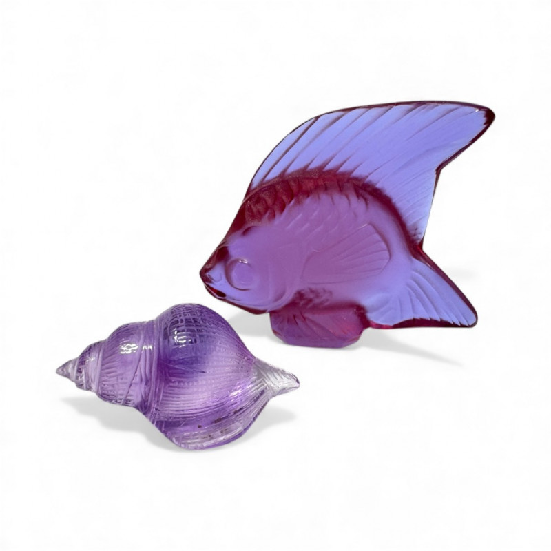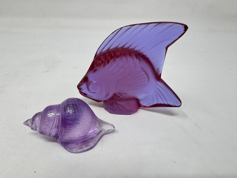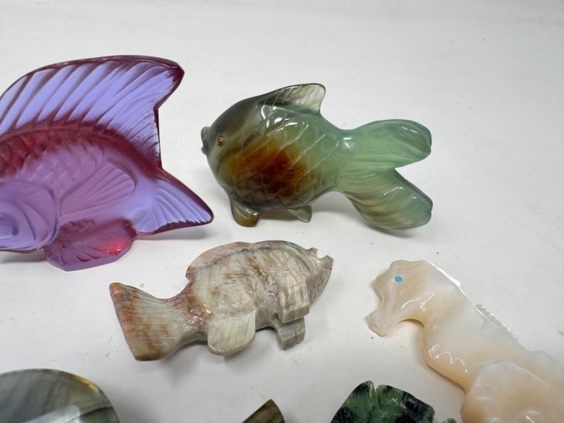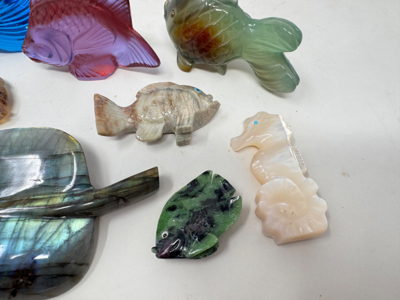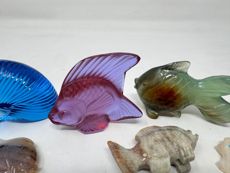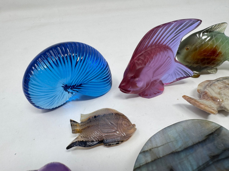Lot # 88 - Lalique & Baccarat Art Glass + Stone Carved Fish & Zuni Fetishes $300+