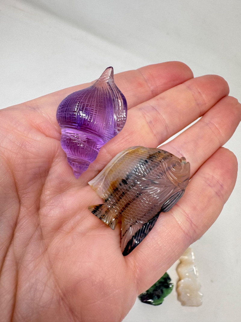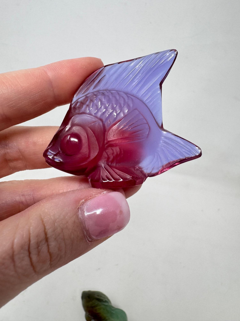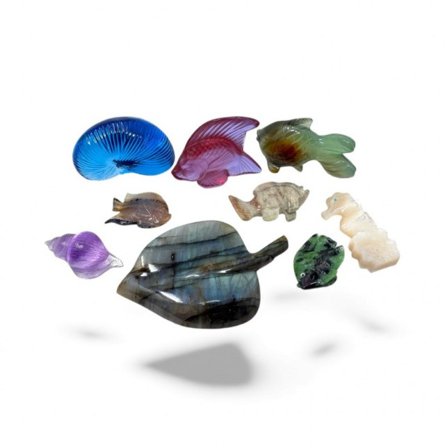 Lalique & Baccarat Art Glass + Stone Carved Fish & Zuni Fetishes $300+