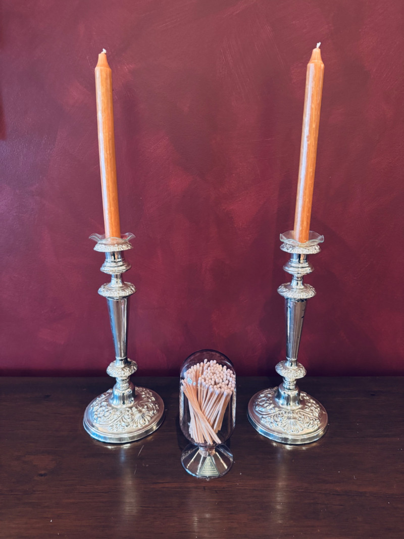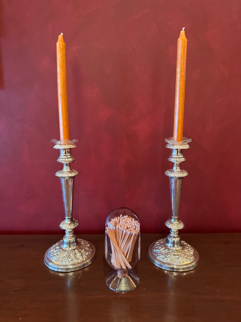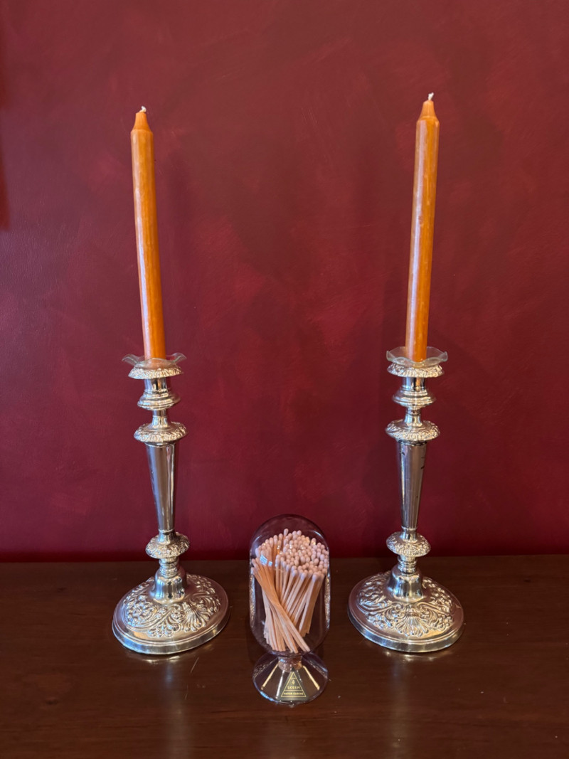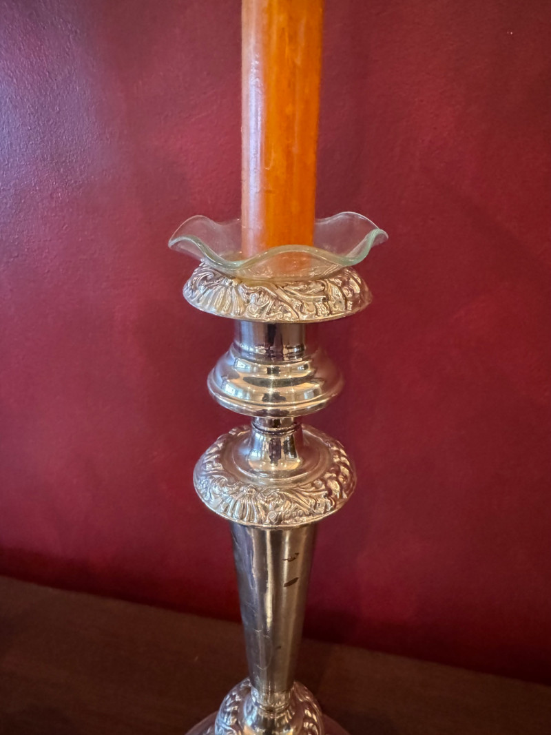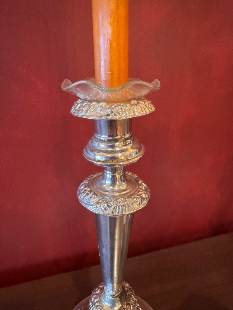 Pair of Silver-Tone Candleholders w/ SKEEM Match Cloche.