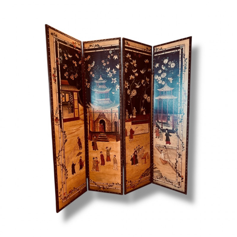 Four-Panel Lacquer Folding Screen – Chinese Coromandel Style.
