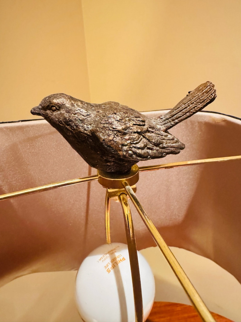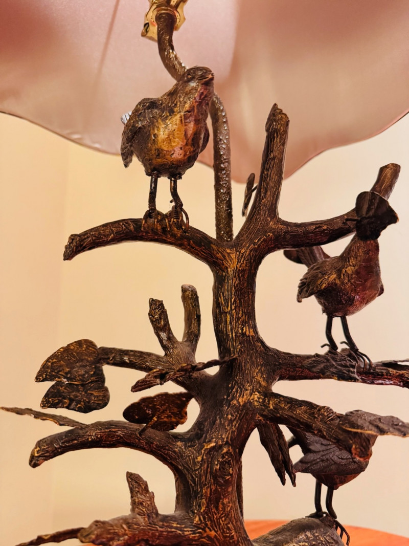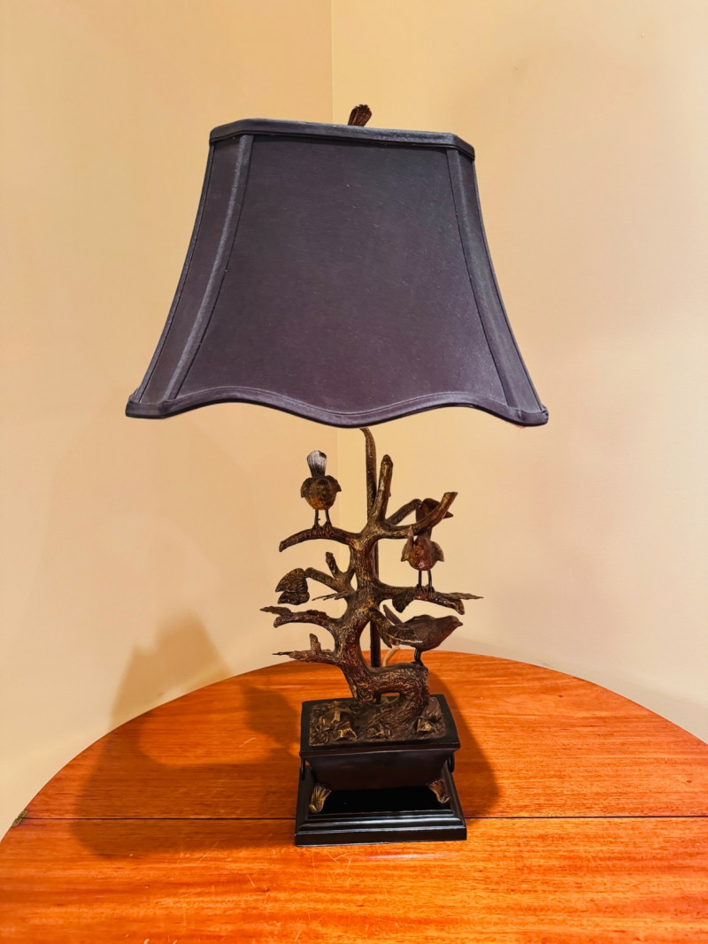 Bronze-Tone Bird Tree Table Lamp w/ Dark Shade.
