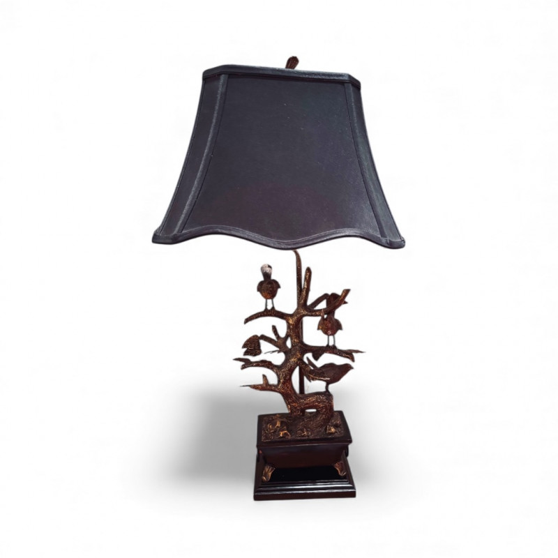 Lot # 12 - Bronze-Tone Bird Tree Table Lamp w/ Dark Shade