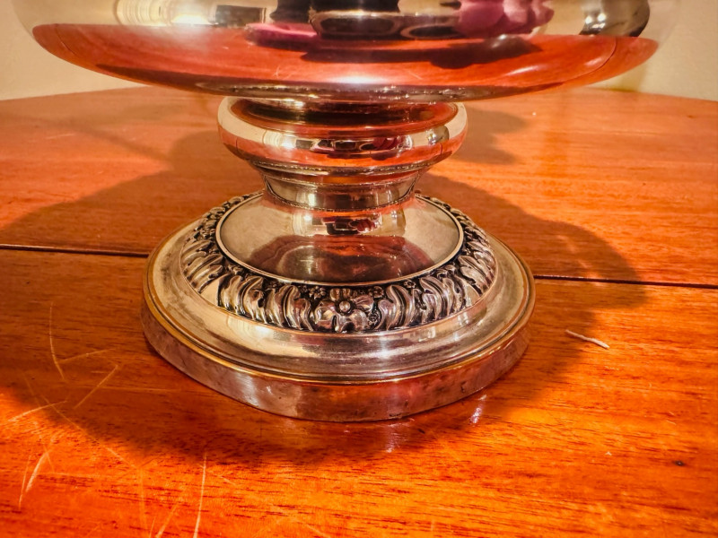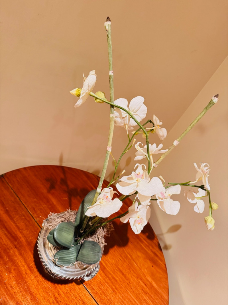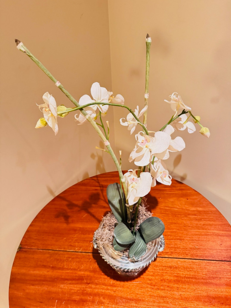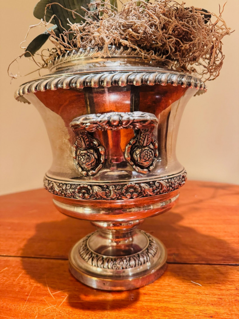 Regency Style Silver Plated Urn Vase w/ White Orchid Arrangement.