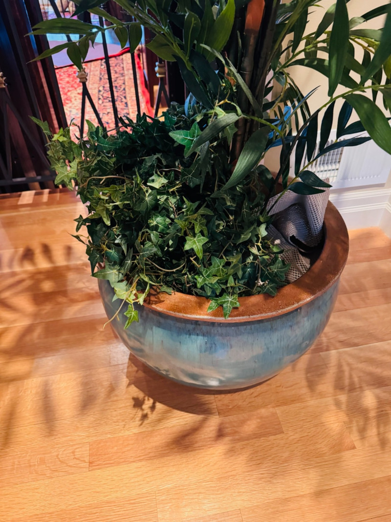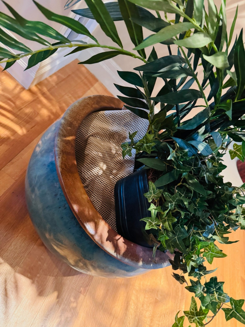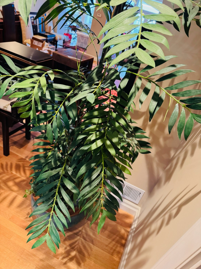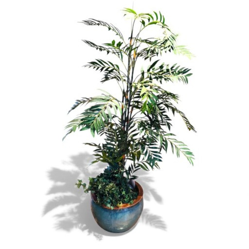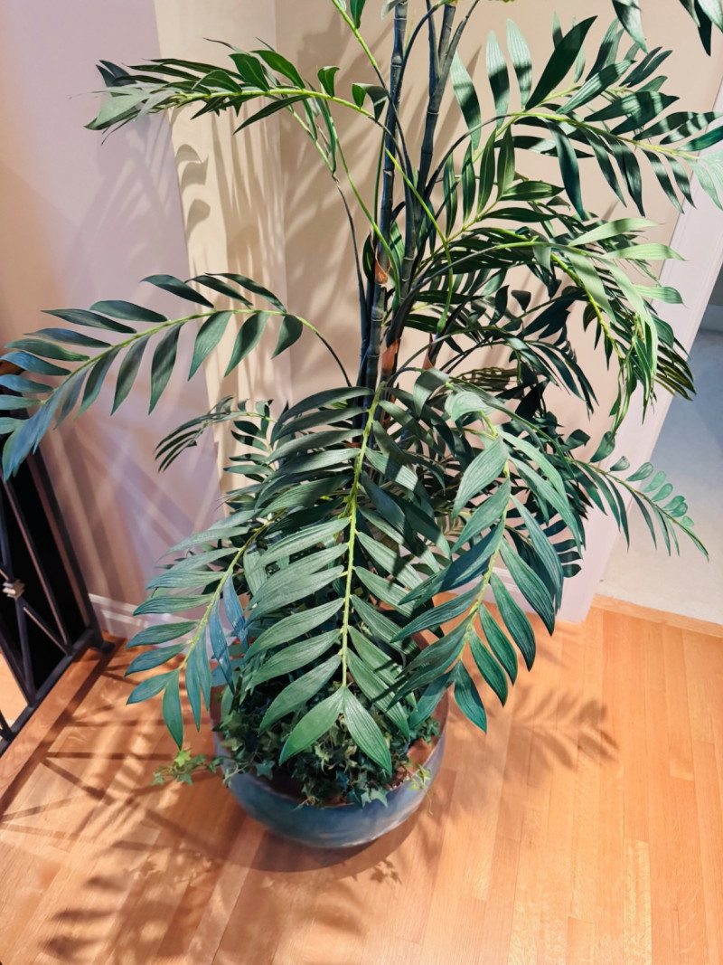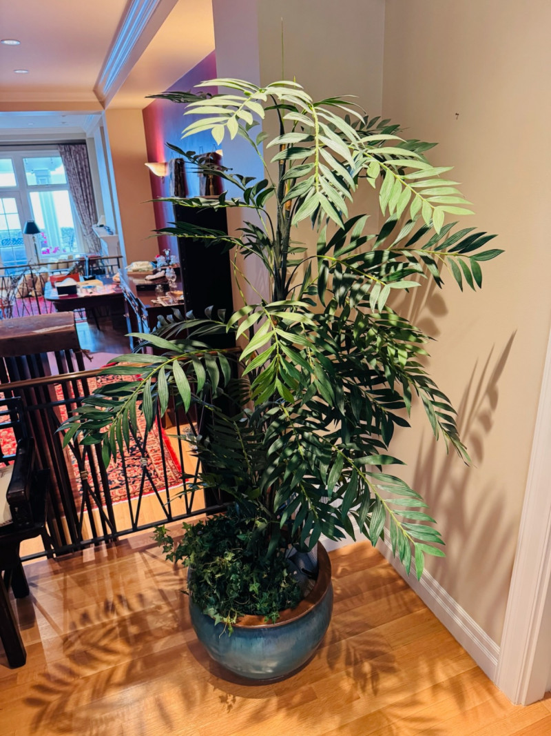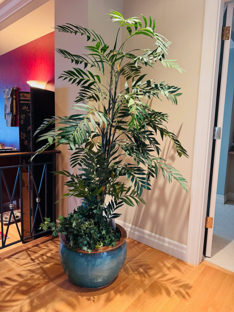 Tall Artificial Palm Tree in Glazed Ceramic Planter.