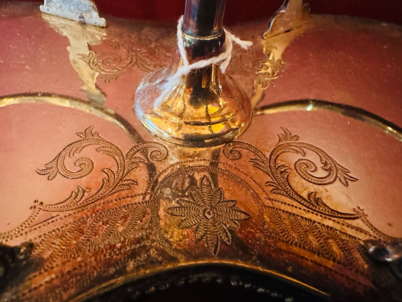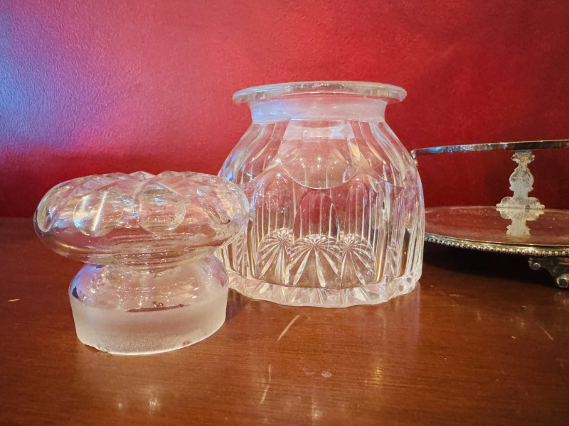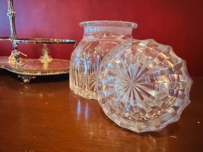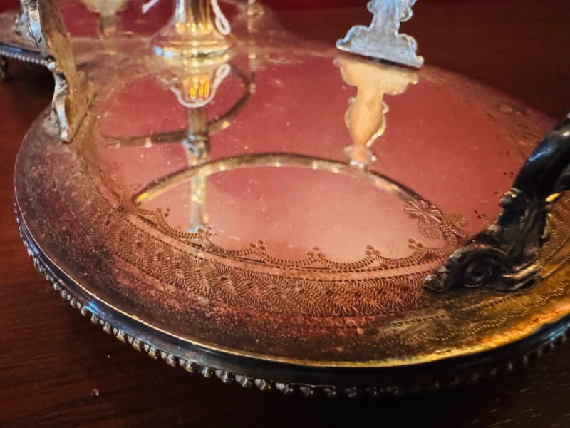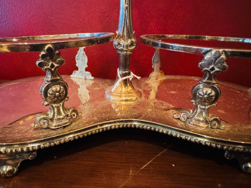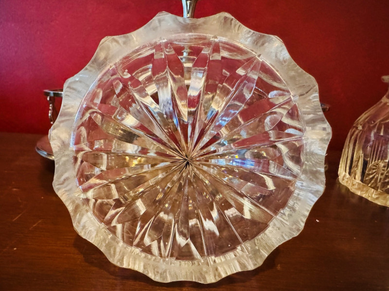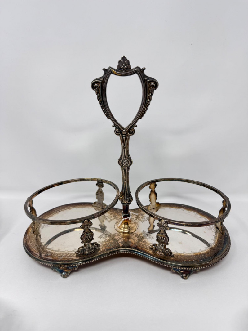Antique Silver Plate Double Jam Stand w/ Cut Crystal Jars.