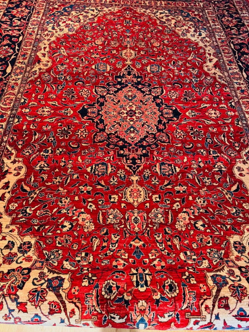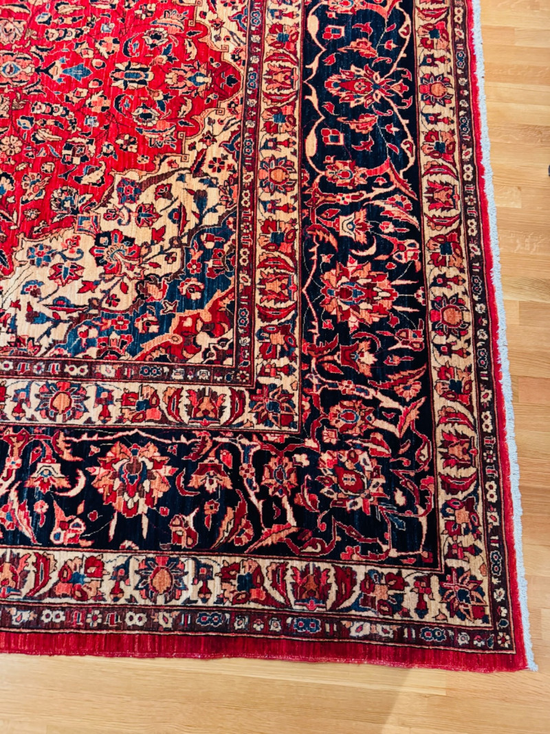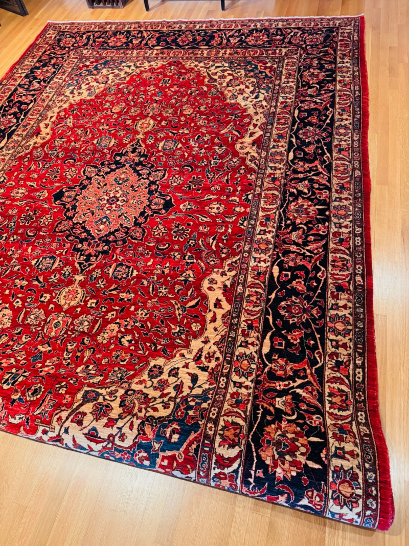 Hand-Knotted Barakat Yayla Tribal Rug w/ Rug Pad 8’7” × 12’9”.