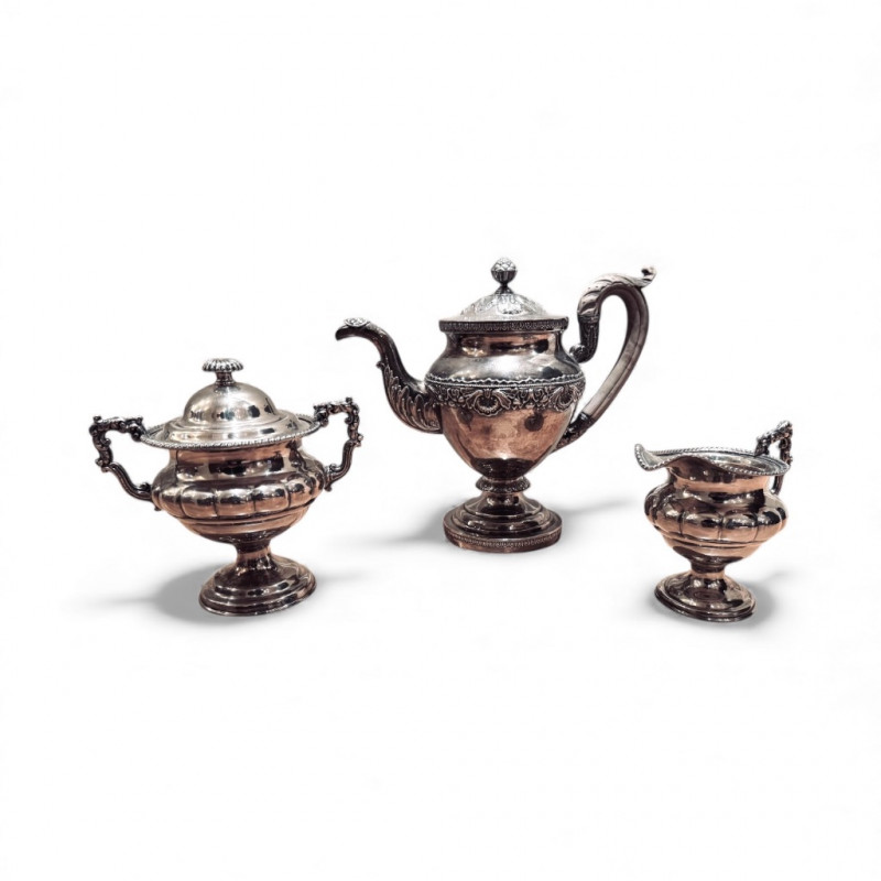 Lot # 24 - Vintage Silverplate 3-Piece Tea Set – Teapot, Sugar, Creamer