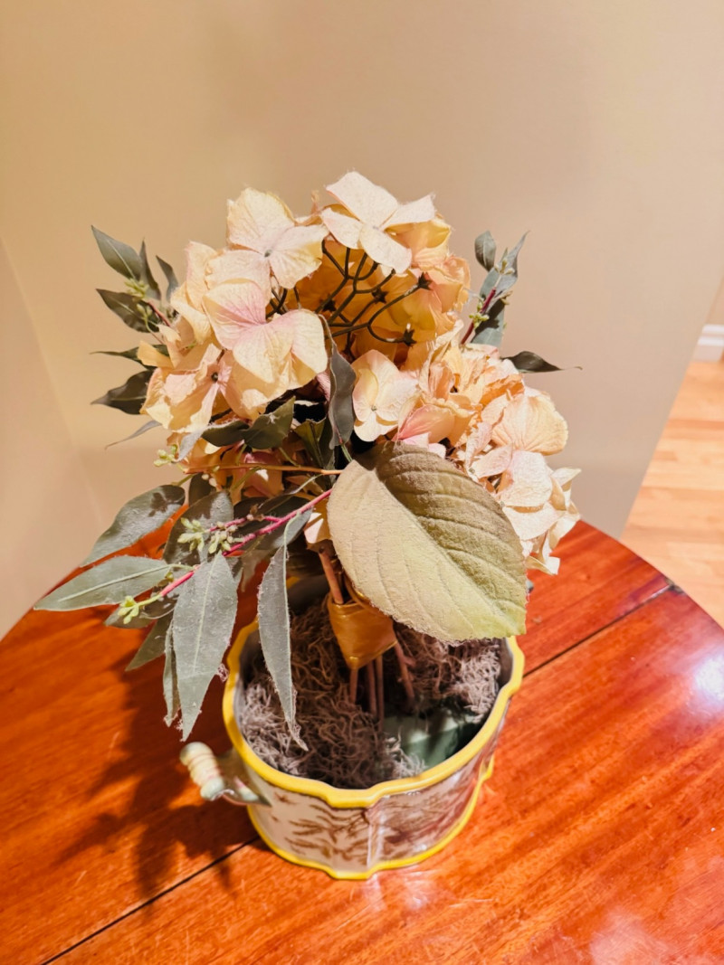 Ceramic Flower Pot w/ Artificial Floral Arrangement.