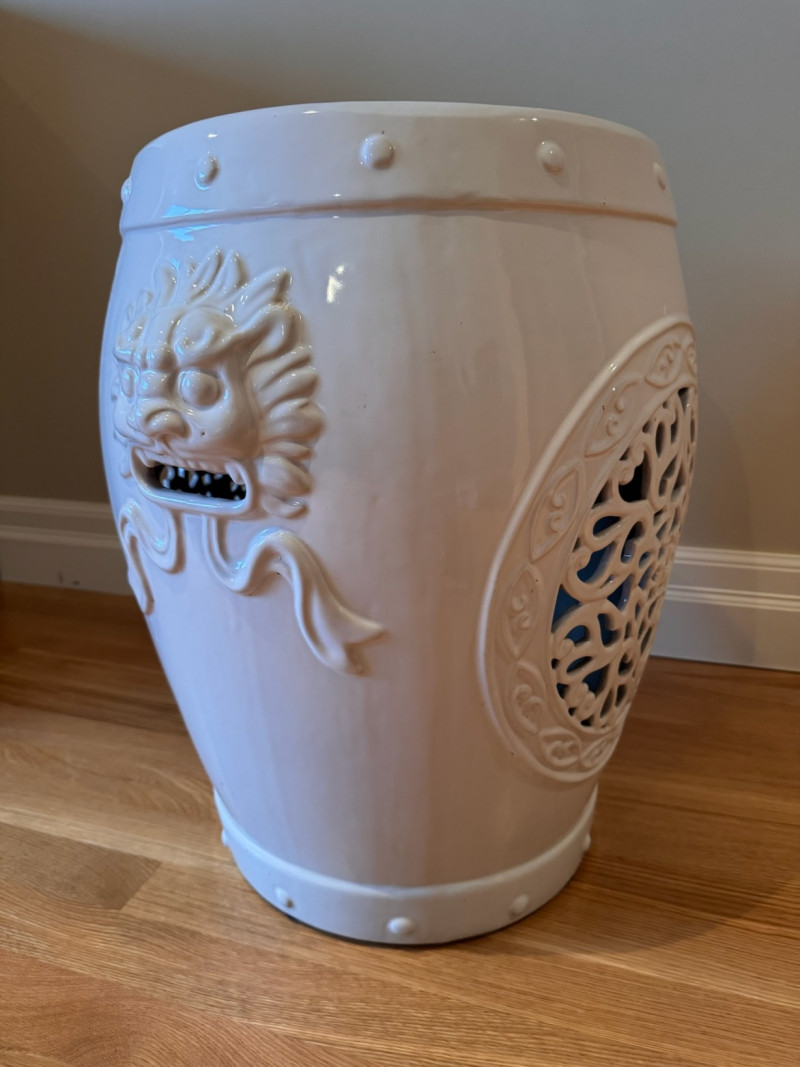 Lot # 38 - Ceramic Dragon Motif Drum Stool