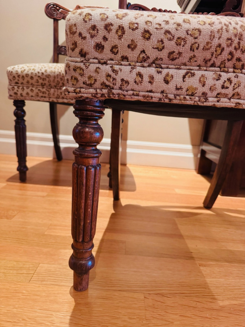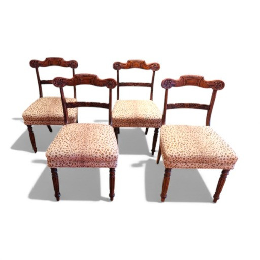 Lot # 43 - 4 Decorative Carved Wood Dining Chairs w/ Leopard Upholstery