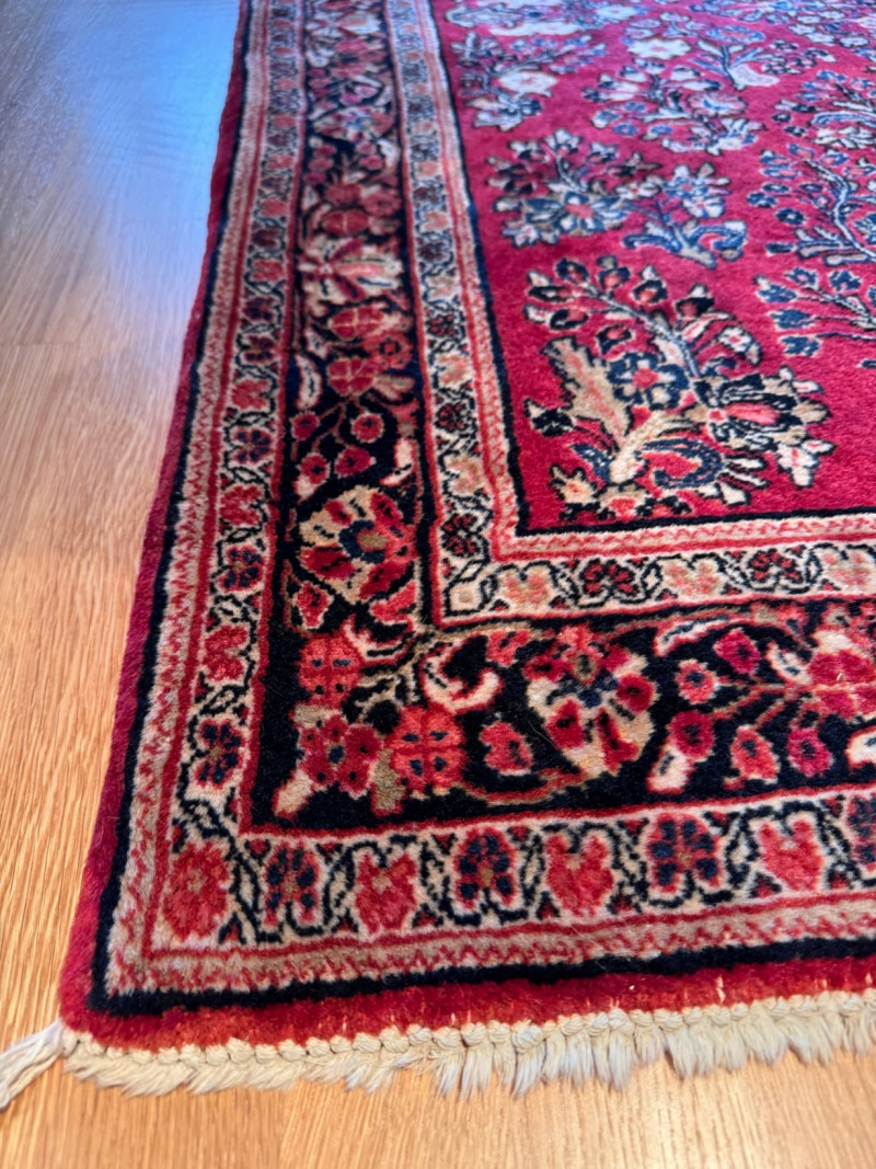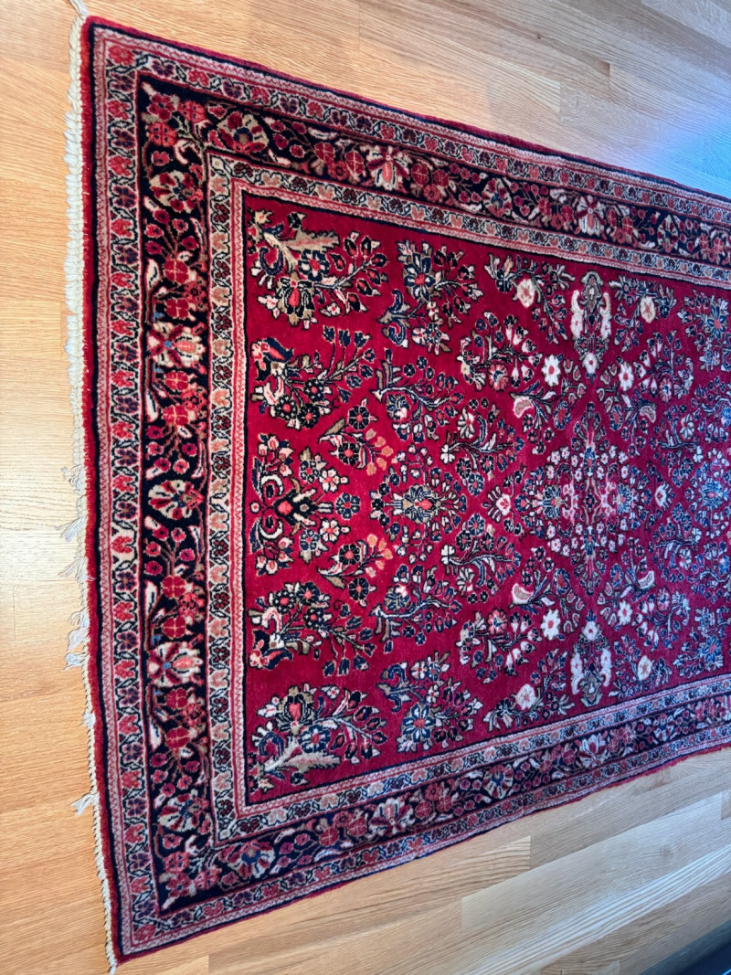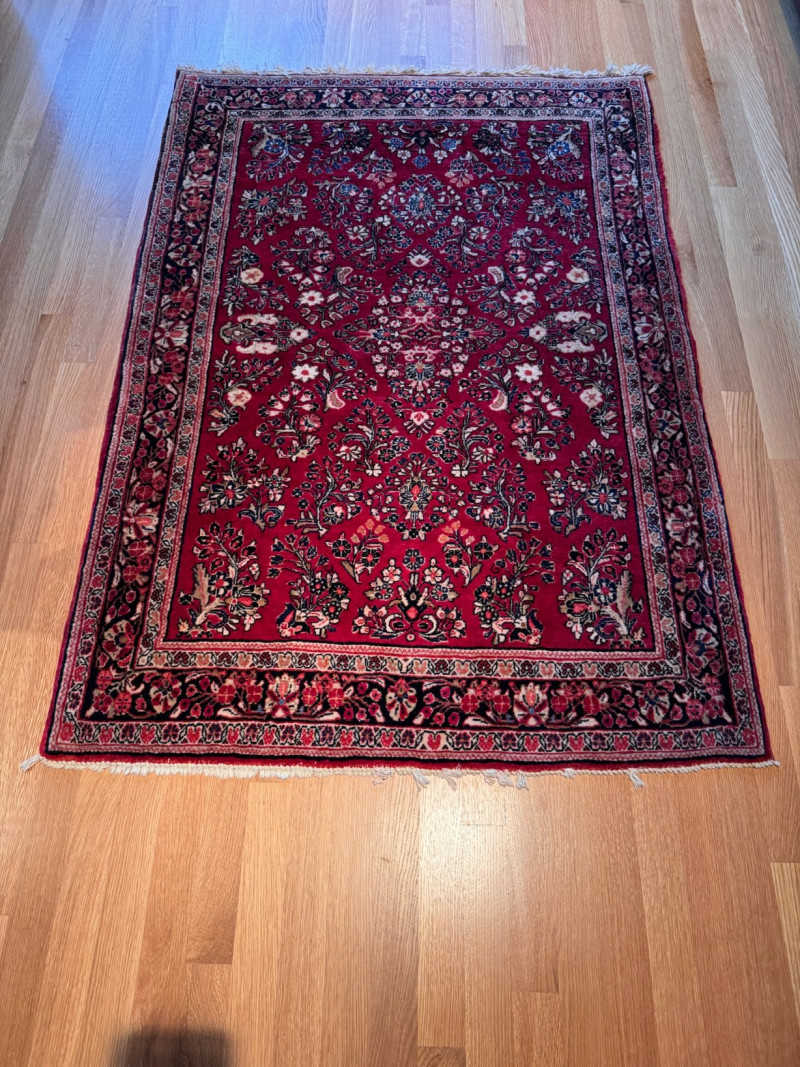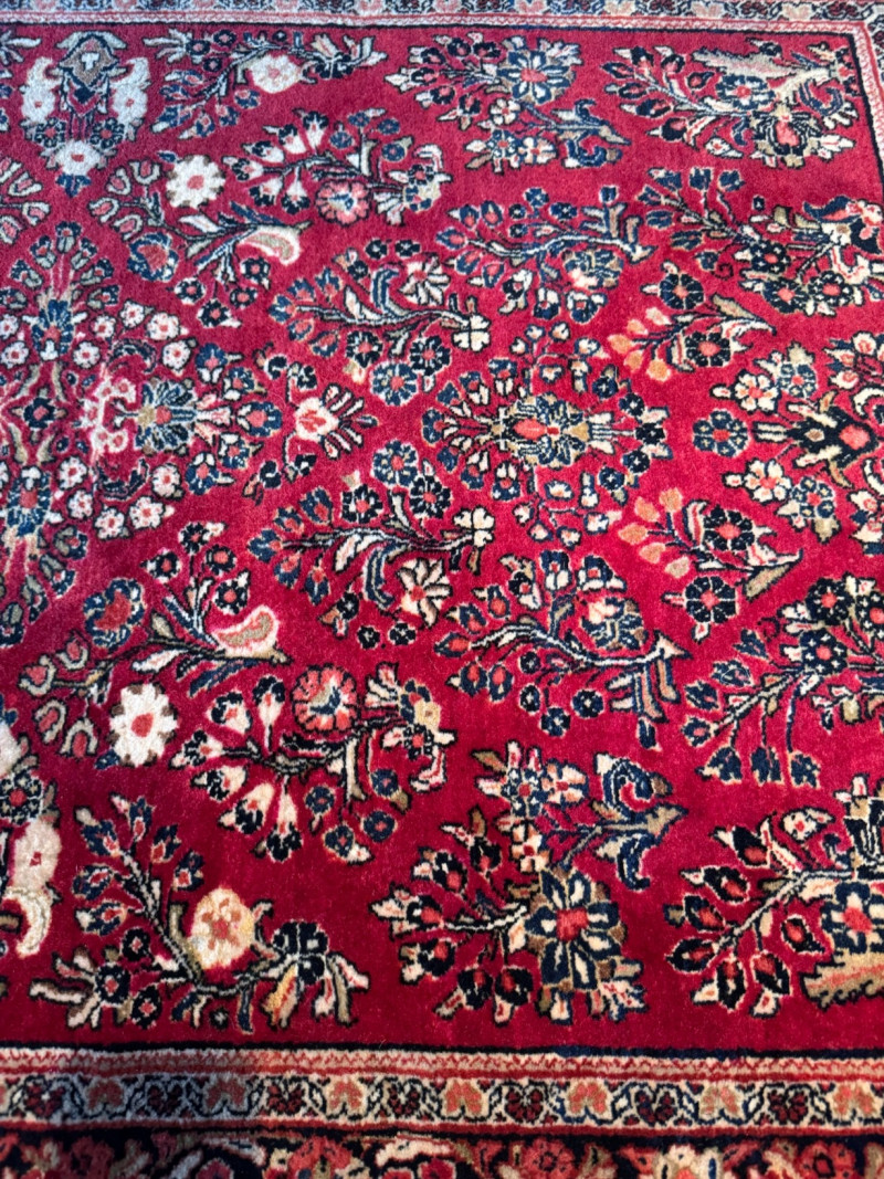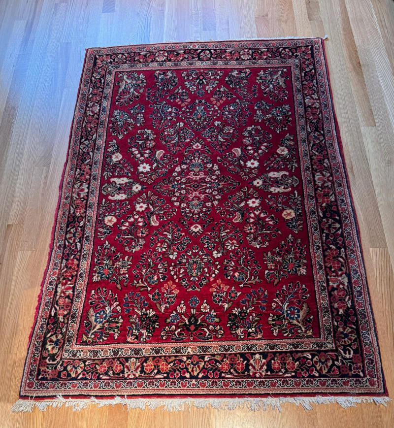 Hand-Knotted Red Floral Area Rug w/ Pad 40” x 58”.