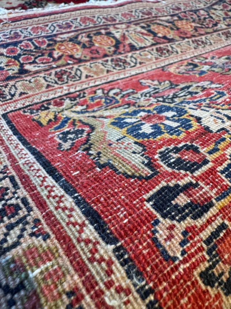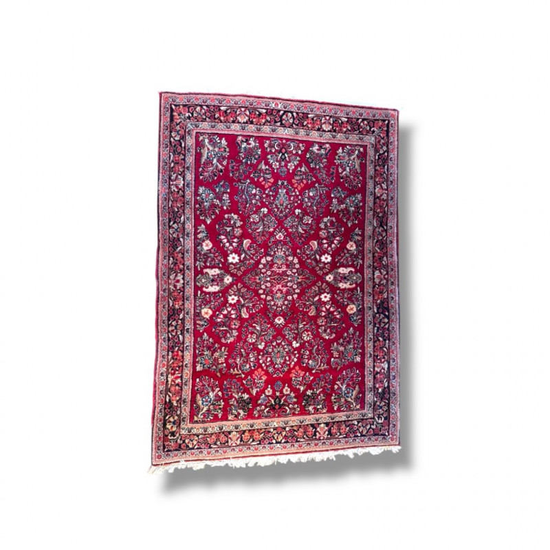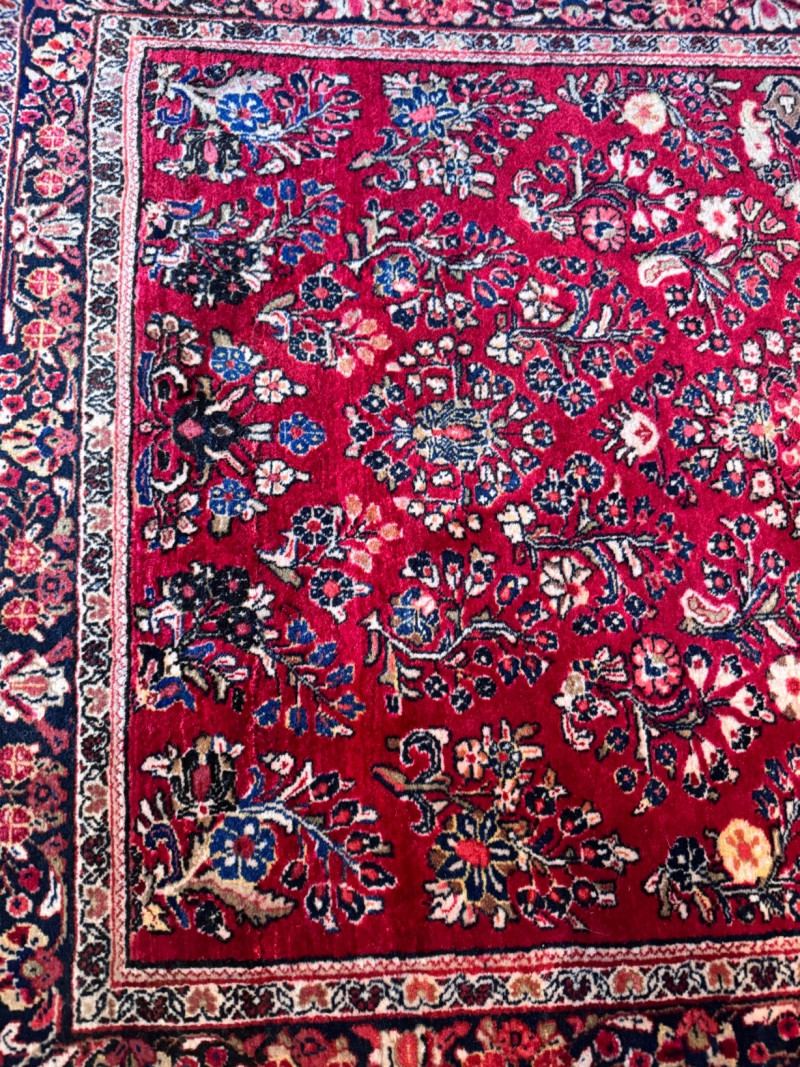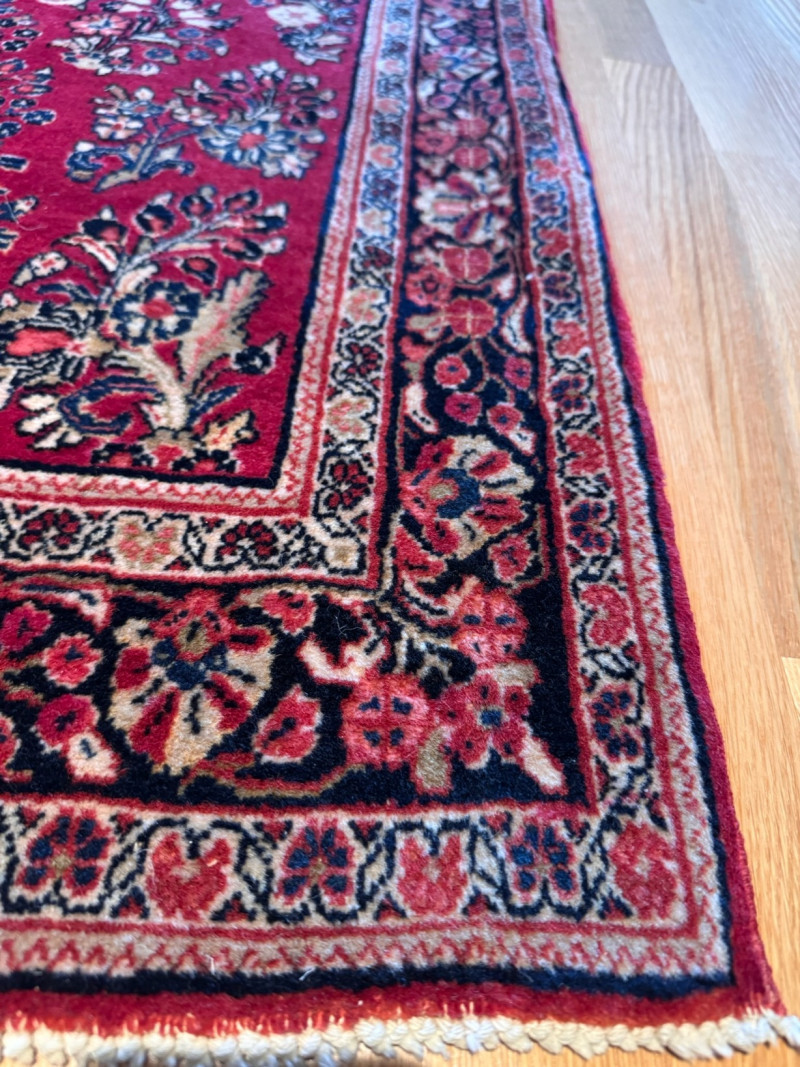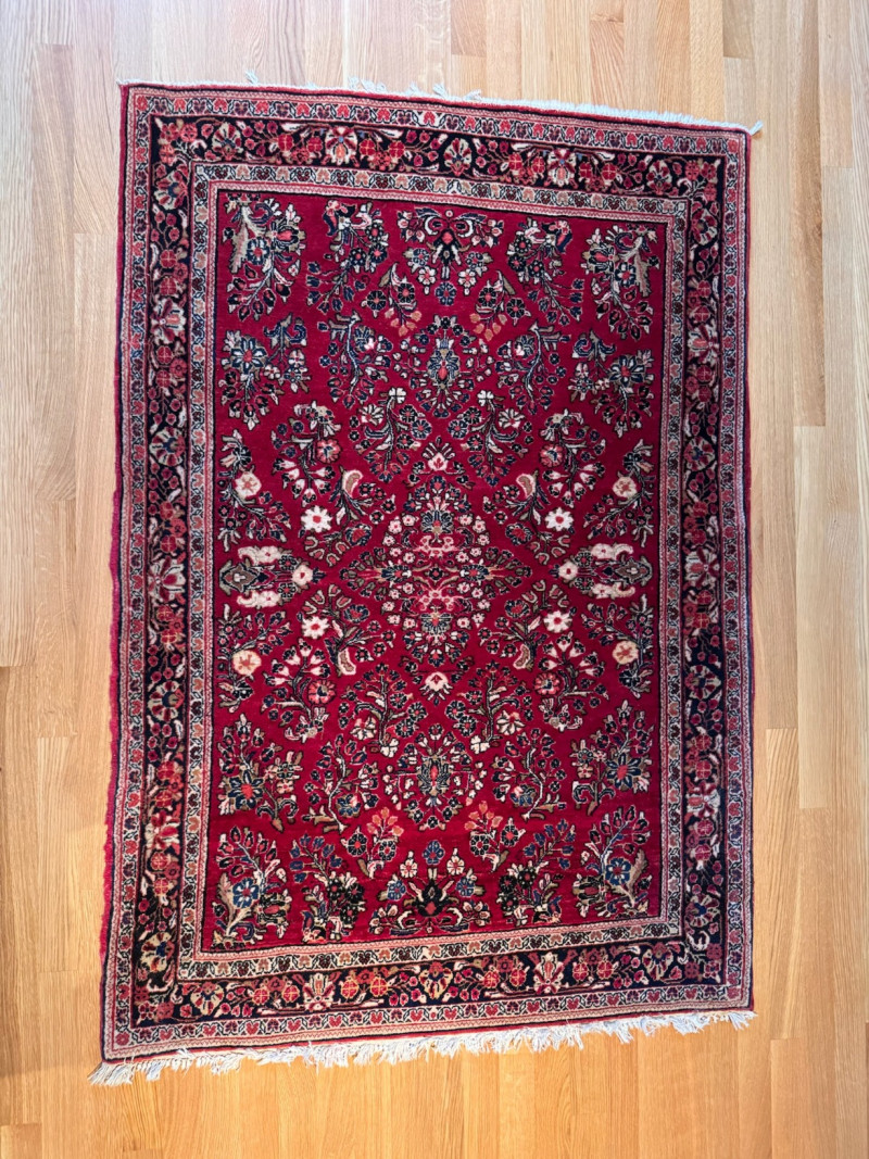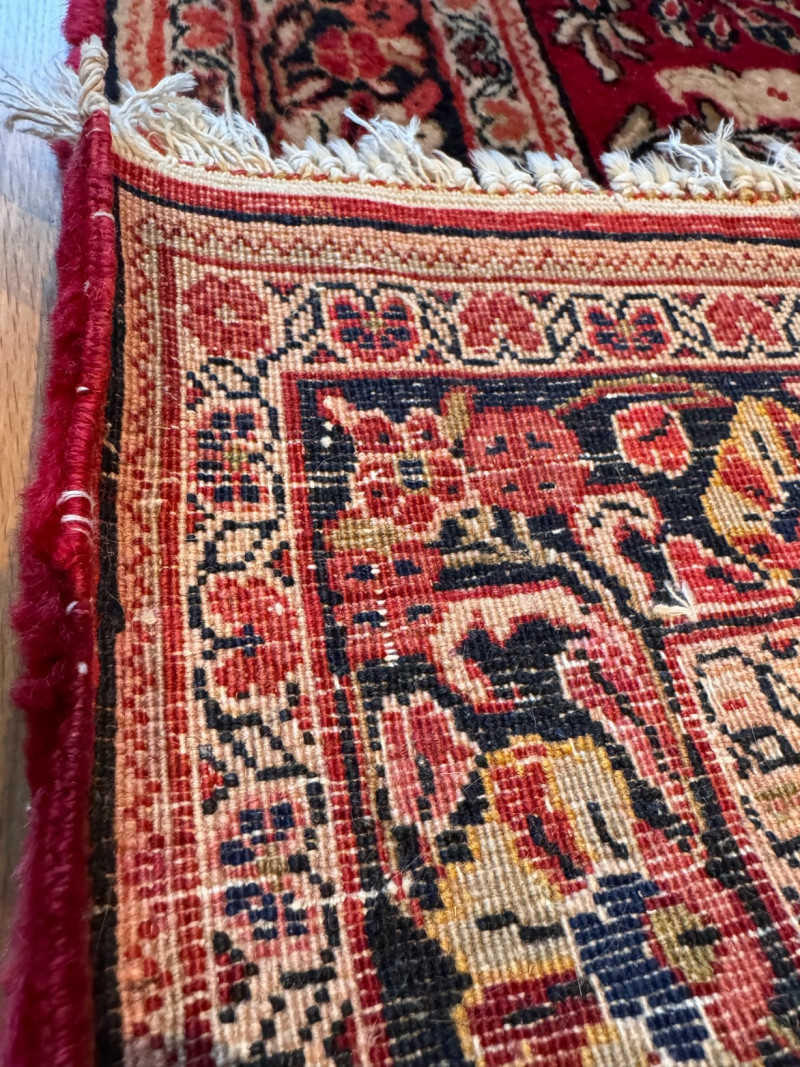 Hand-Knotted Red Floral Area Rug w/ Pad 40” x 58”.