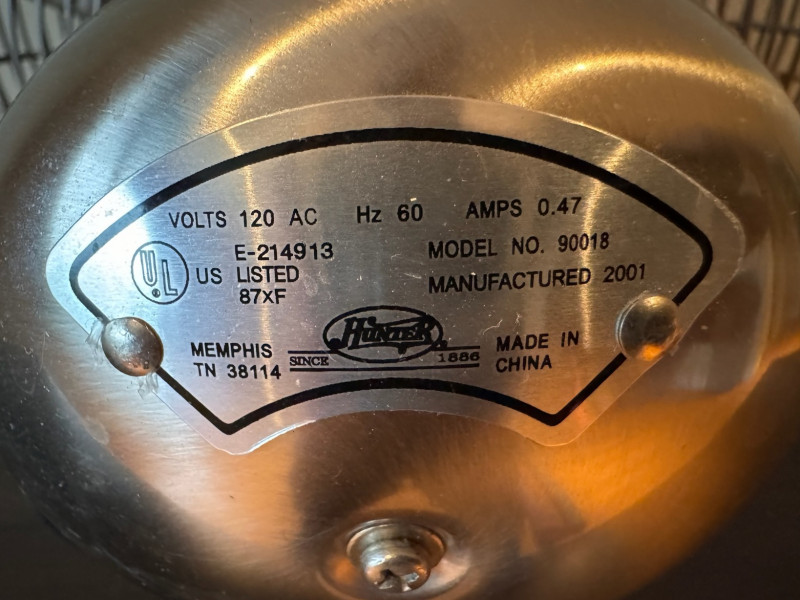 Lot # 51 - Hunter Century All-Metal Retro Oscillating 3-Speed Table Fan