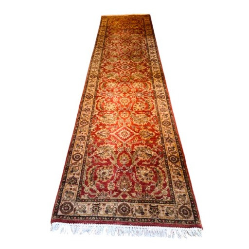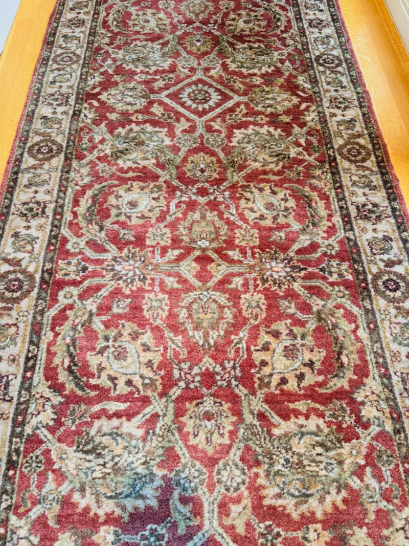 Hand-Knotted Wool Floral & Medallion Runner. • Approx. size: 36” W x 138” L