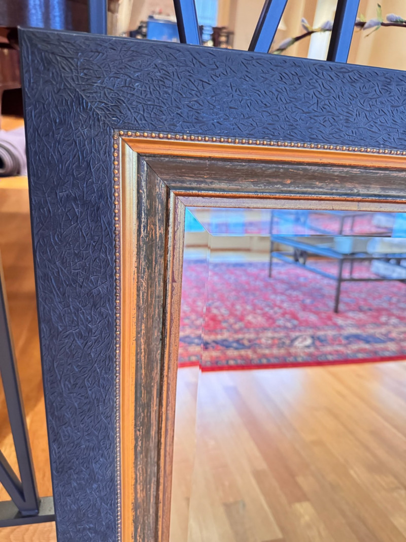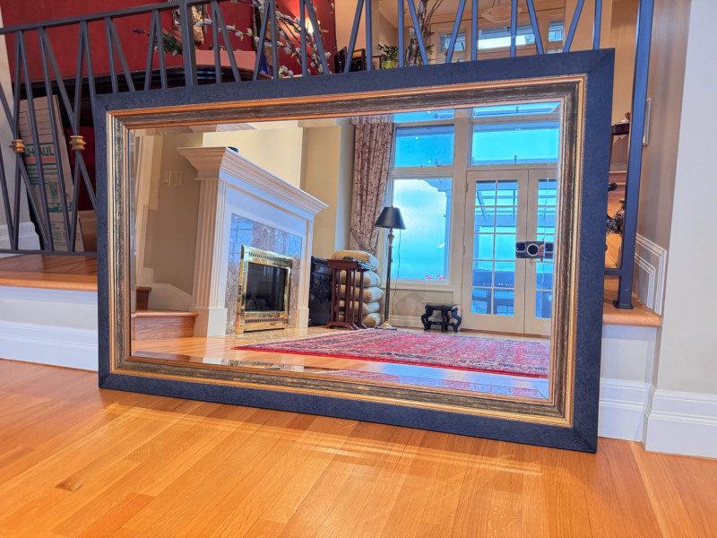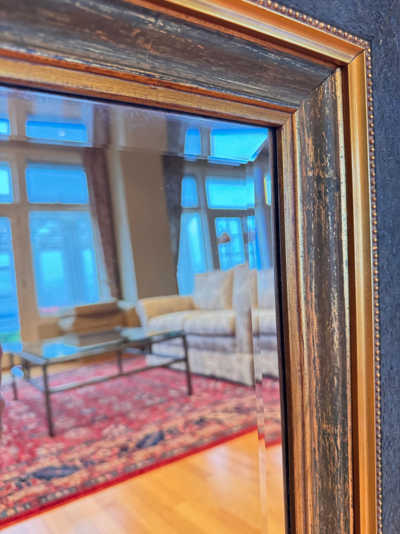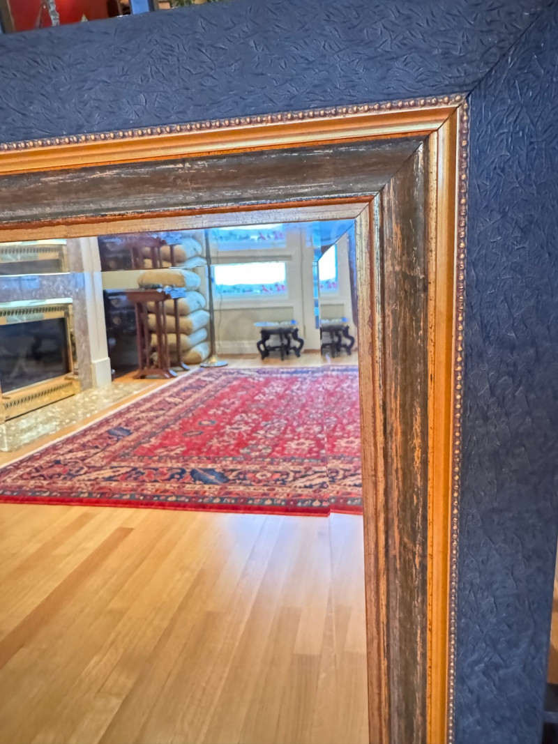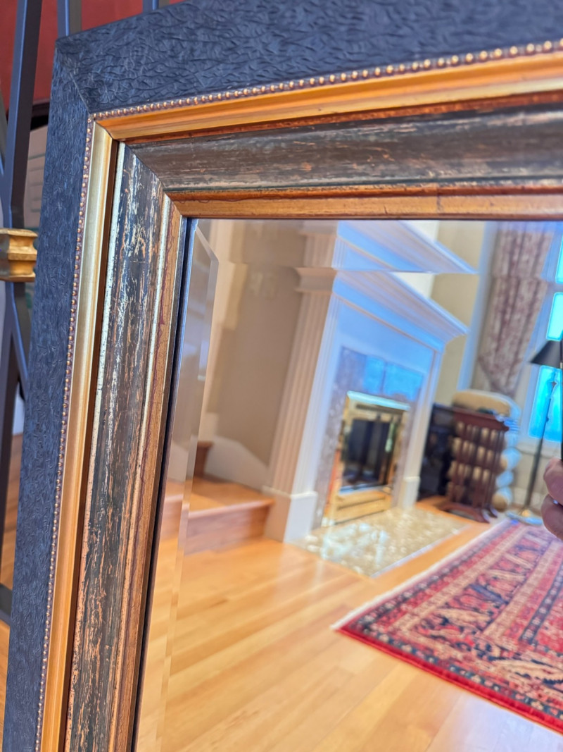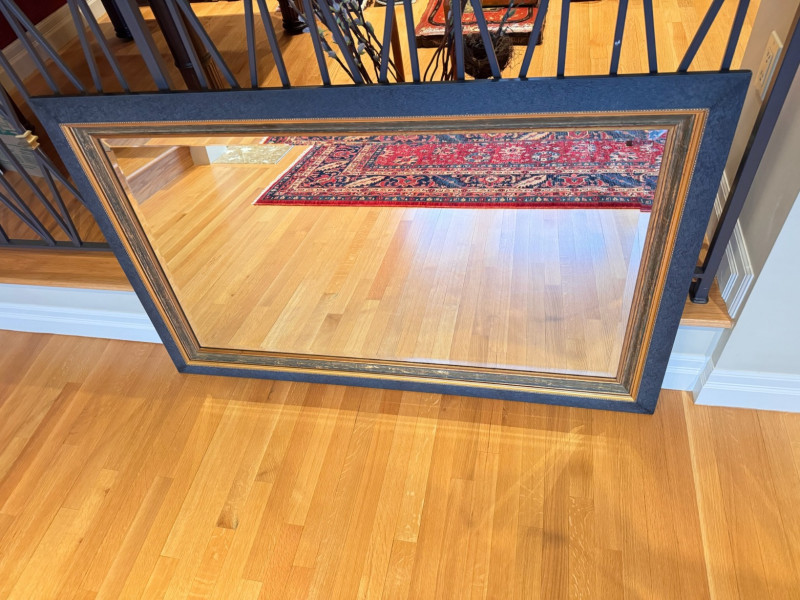 Large Wall Mirror – Heavy Wood Frame w/ Gold Trim.