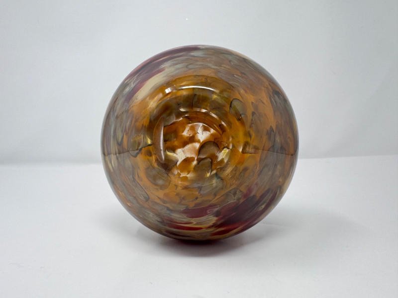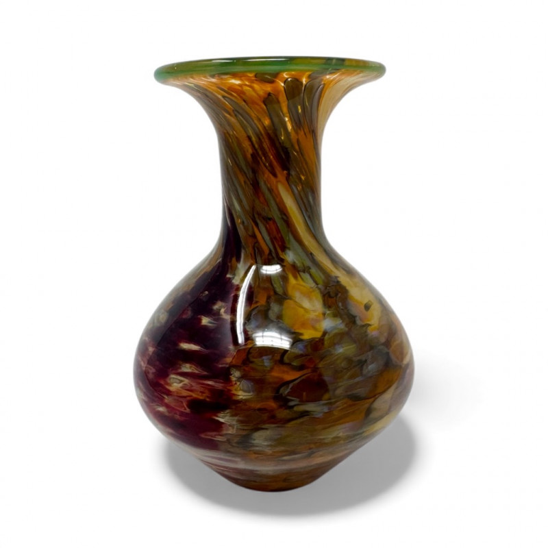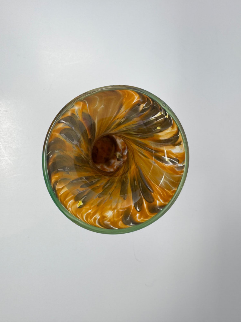 Handblown Art Glass Vase – Swirled Amber/Brown/Gold Pattern.