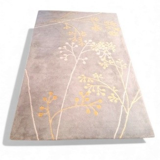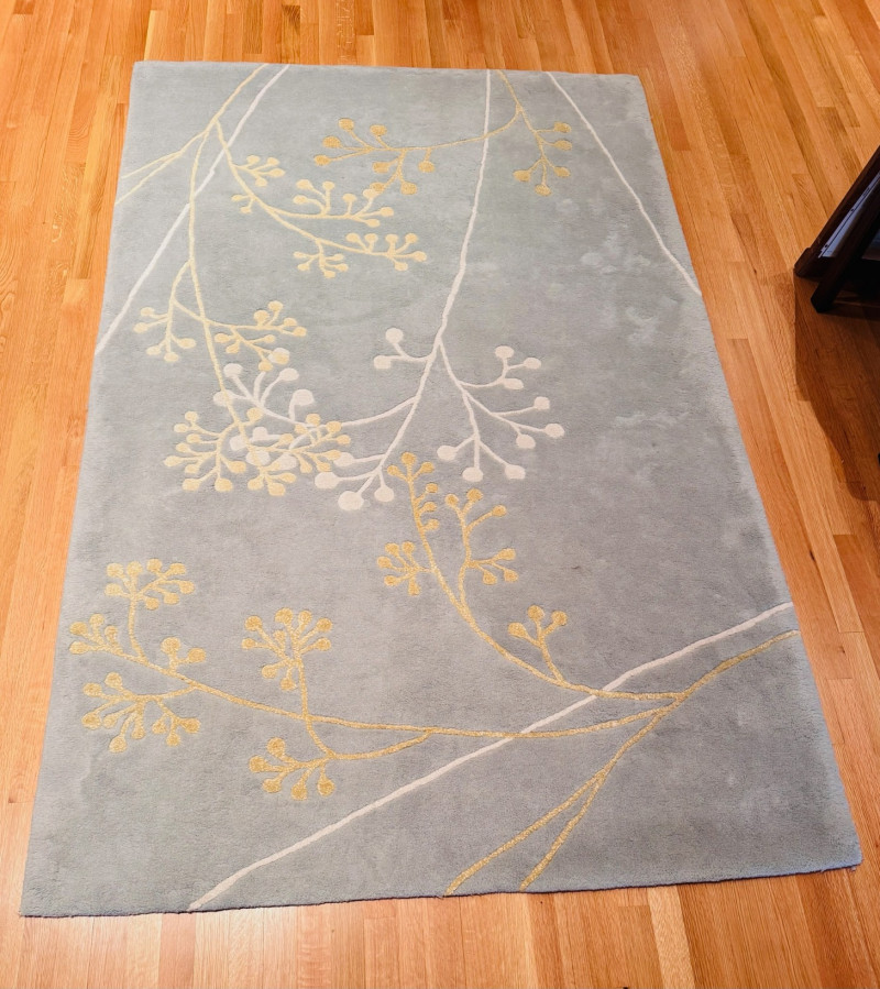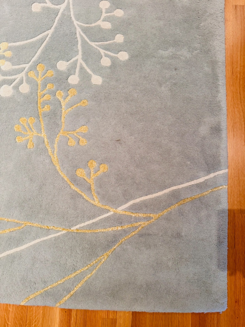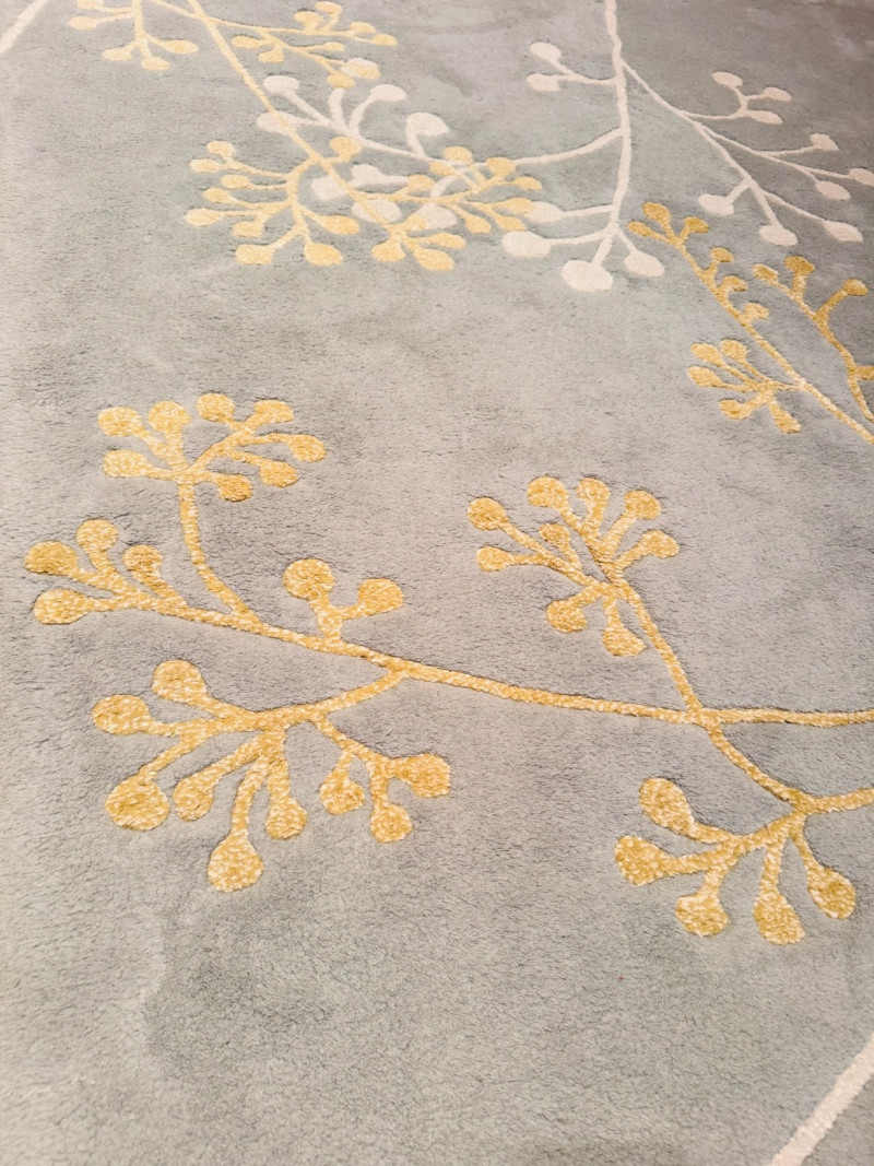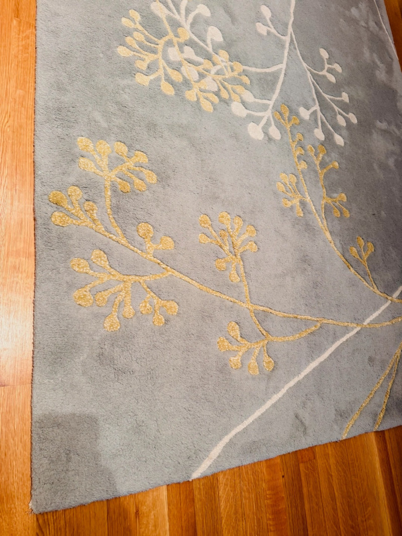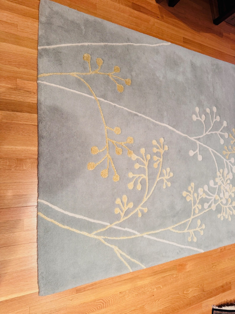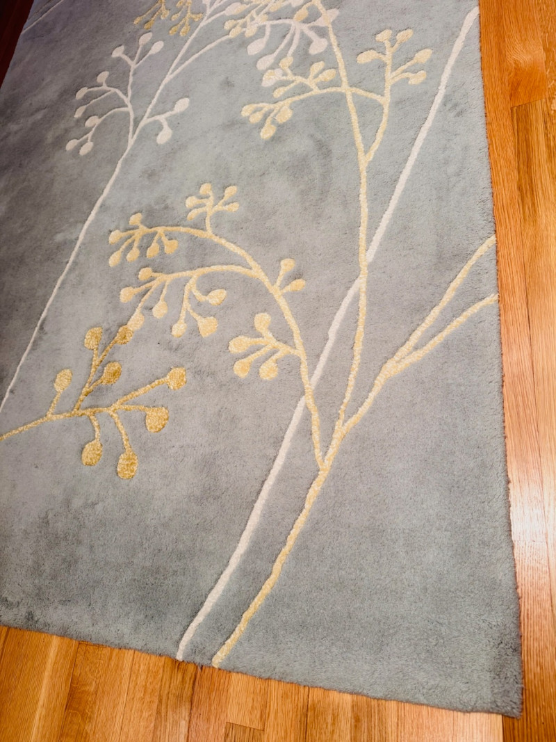 Hand-Tufted Rug, Soft Gray w/ Yellow/Cream Botanical Pattern – 60"x94"