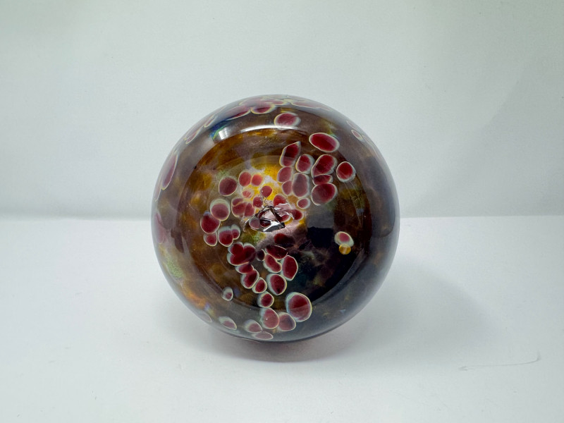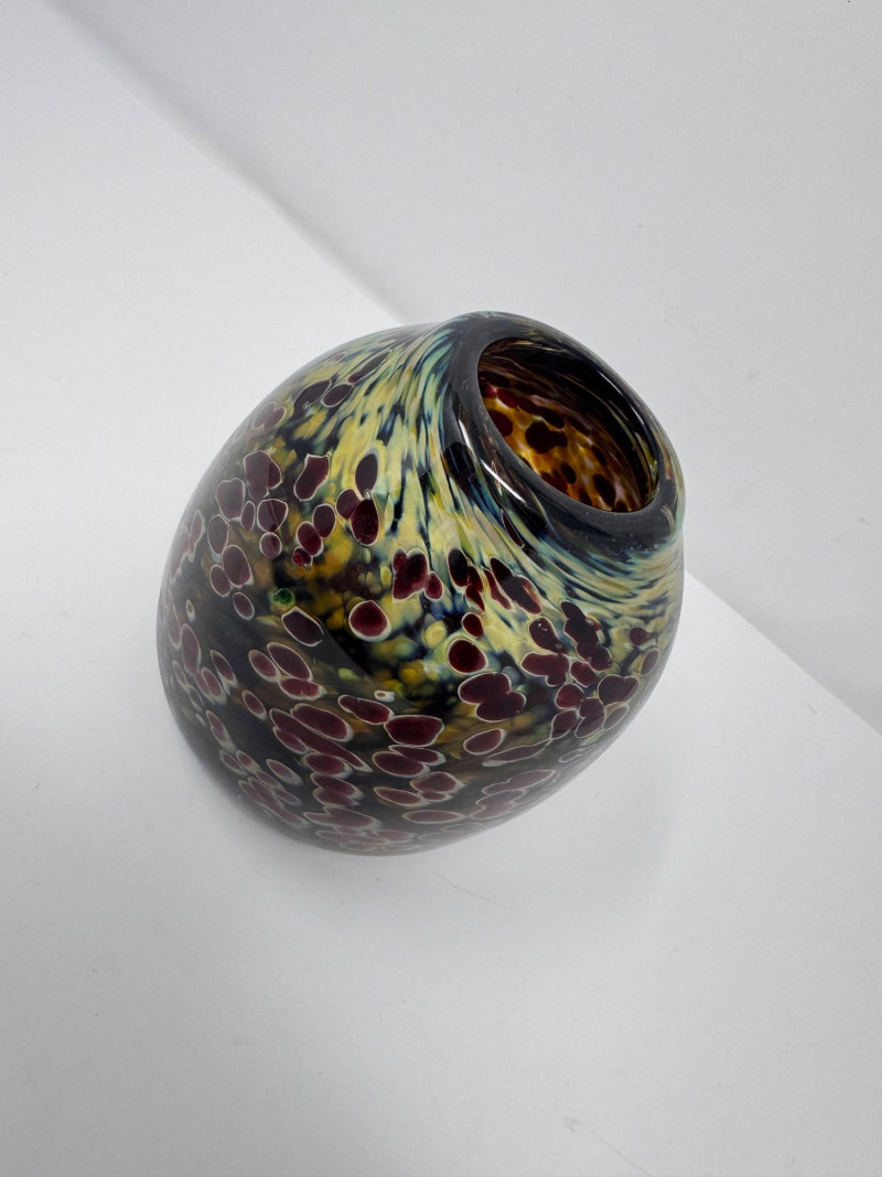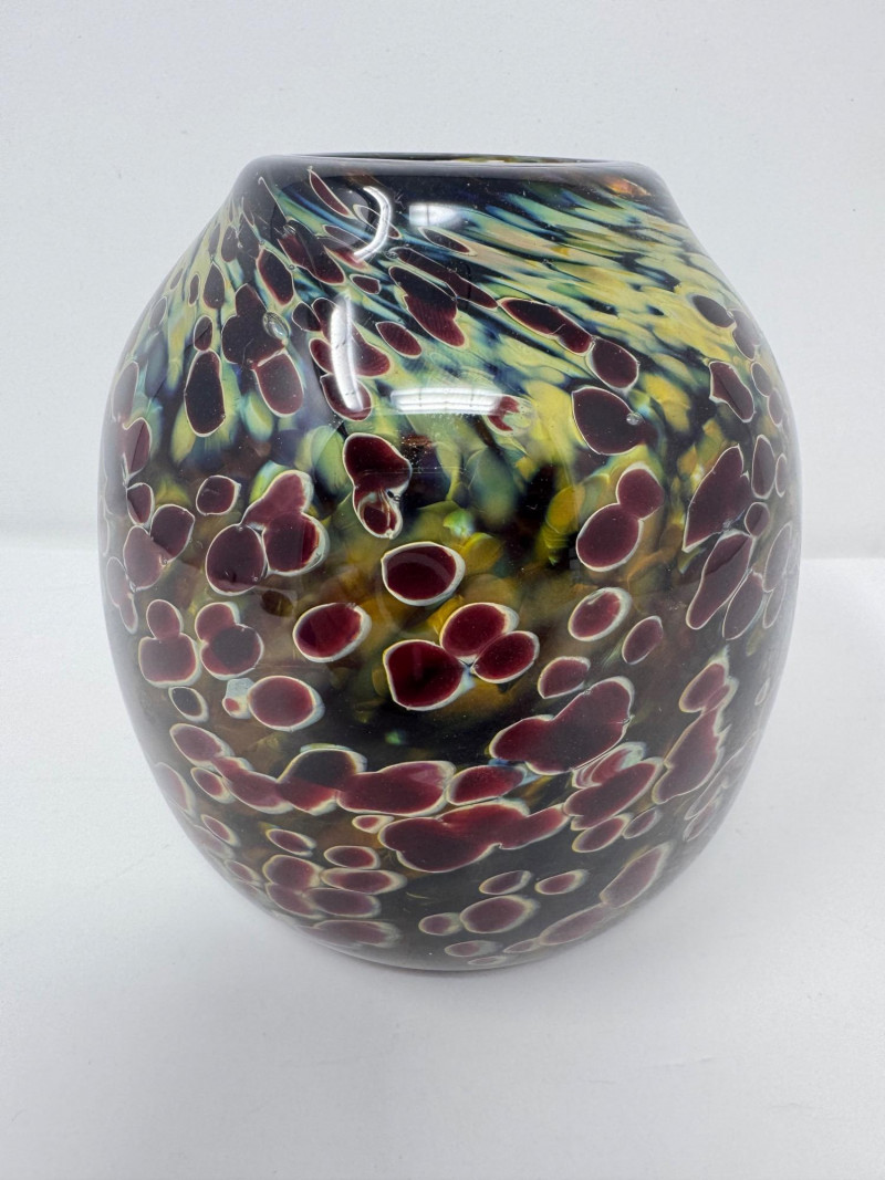 Hand-Blown Multicolor Spotted Art Glass Vase.