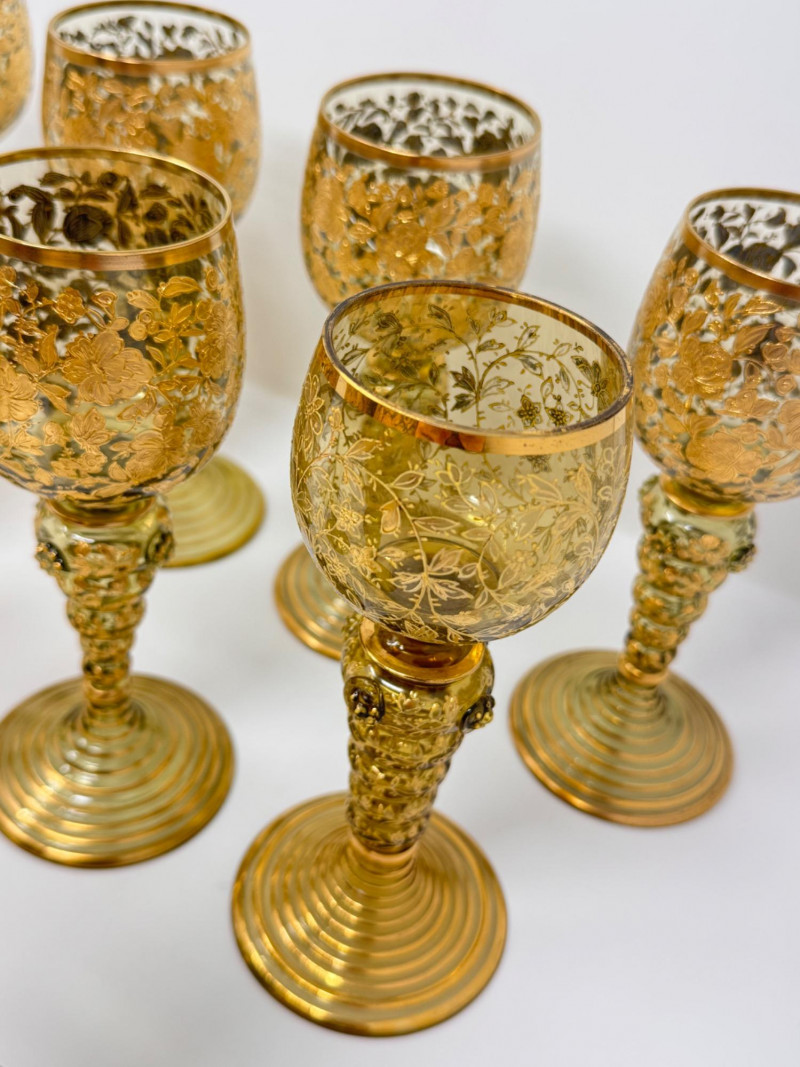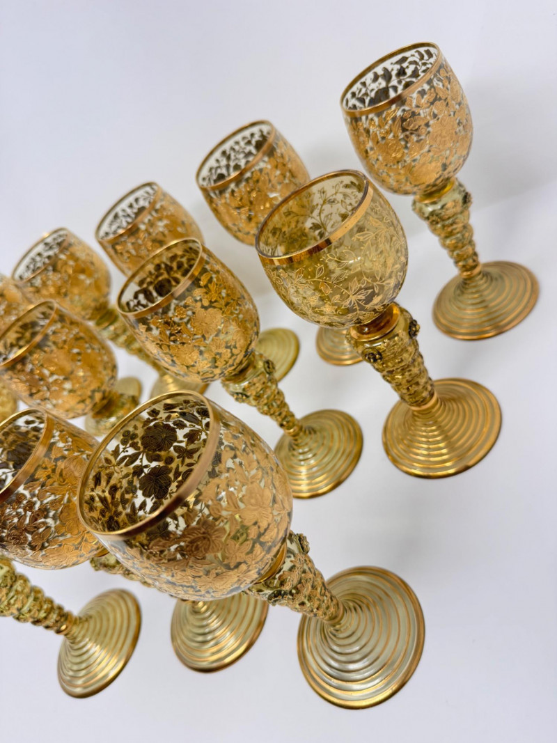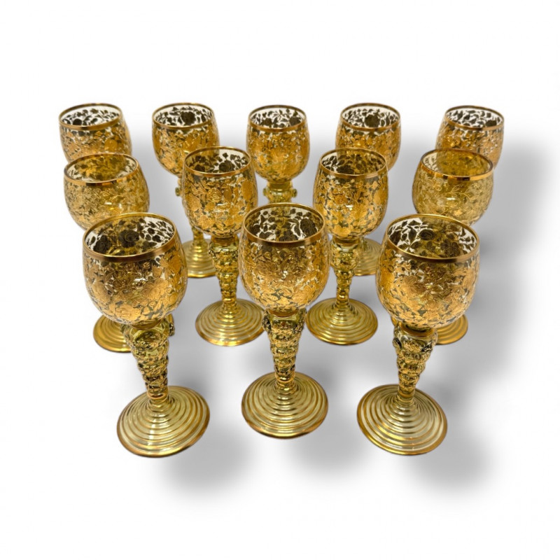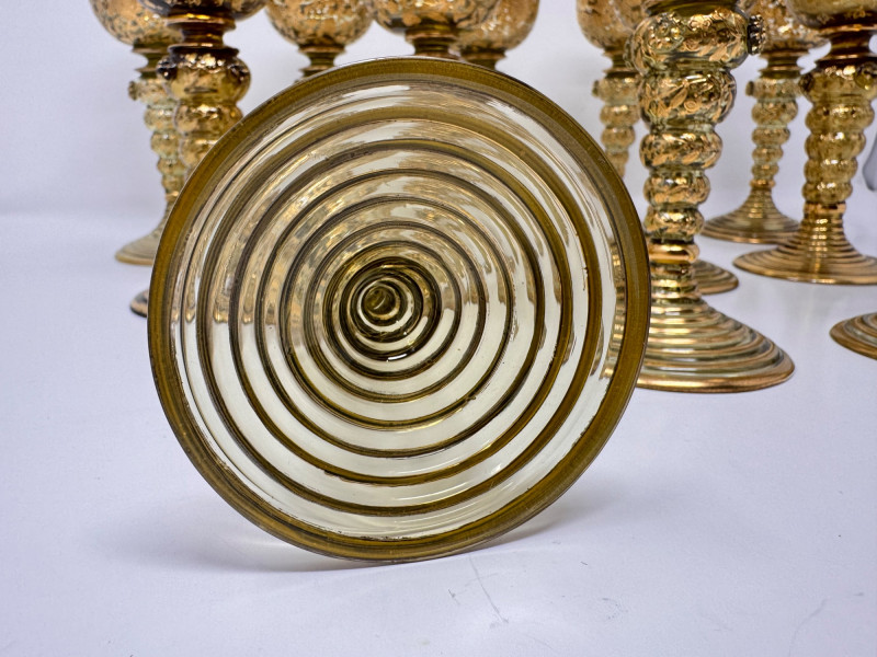 Lot # 84 - 12-Piece Embossed Gold/Green Goblet Set – Decorative Glassware