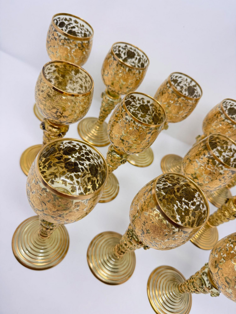 12-Piece Embossed Gold/Green Goblet Set – Decorative Glassware.
