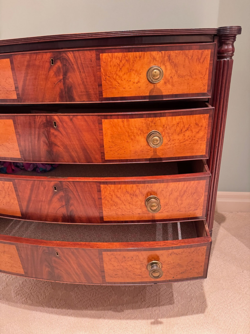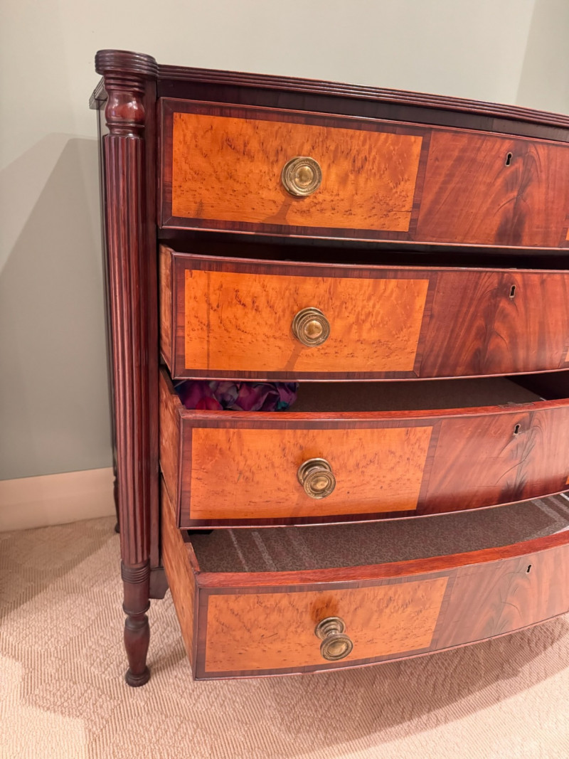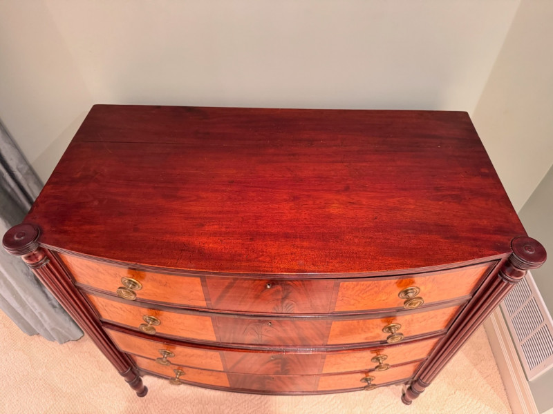 Lot # 100 - Antique Bow-Front 4-Drawer Dresser- Circa 1820, American Made