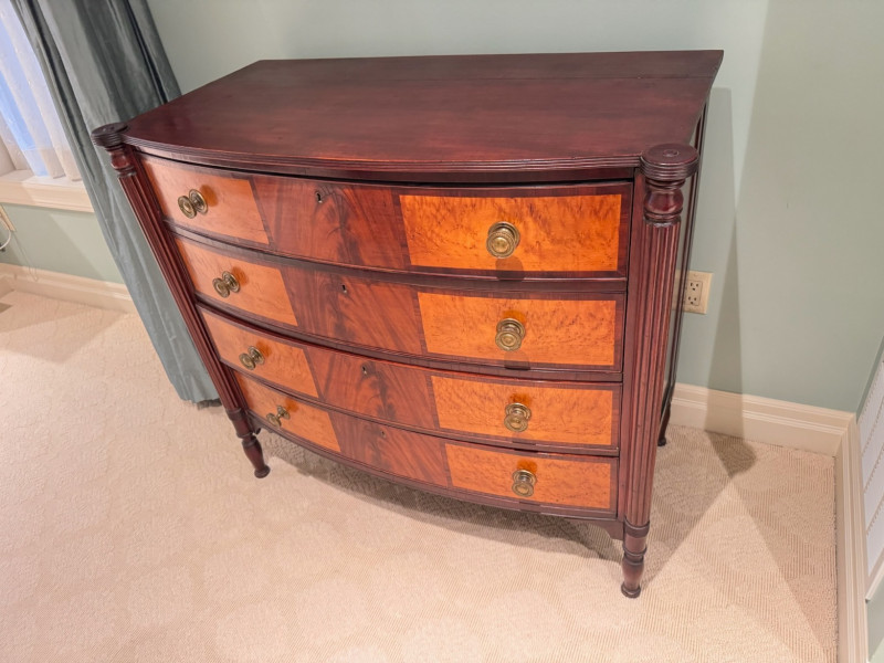 Antique Bow-Front 4-Drawer Dresser- Circa 1820, American Made