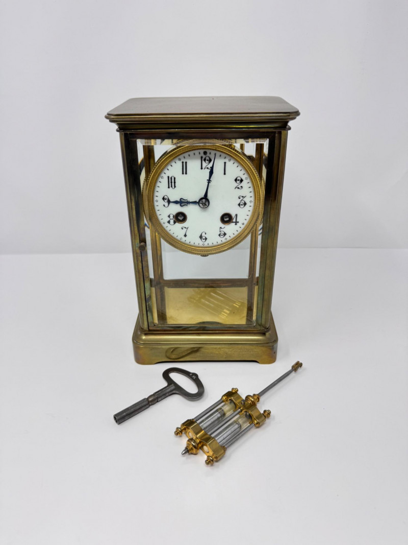 Antique French Crystal Regulator Clock w/ Mercury Pendulum & Key $1200.