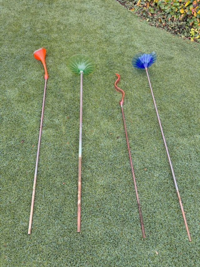 Lot # 119 - Set of 4 Colorful Glass & Metal Garden Art Stakes