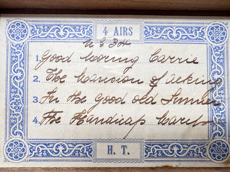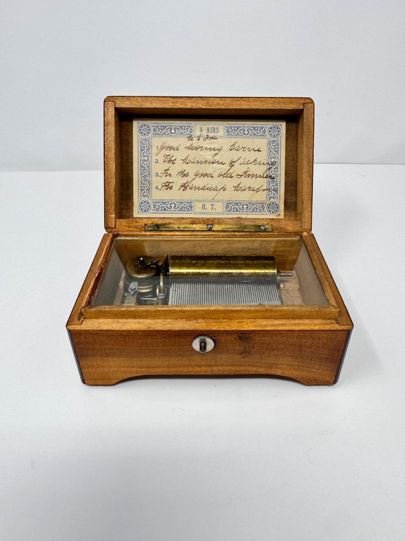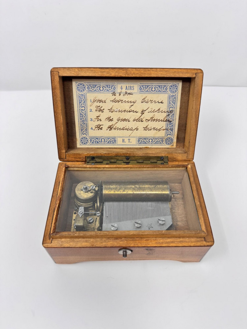 Antique 4-Air Cylinder Music Box in Wood Case.