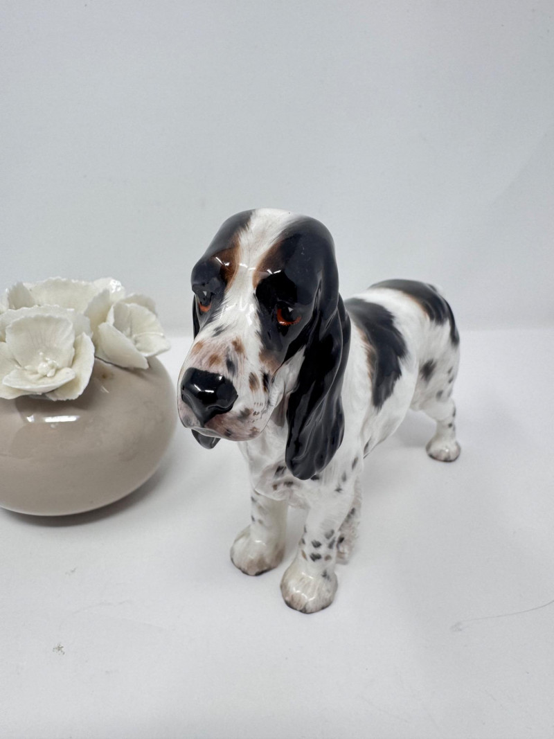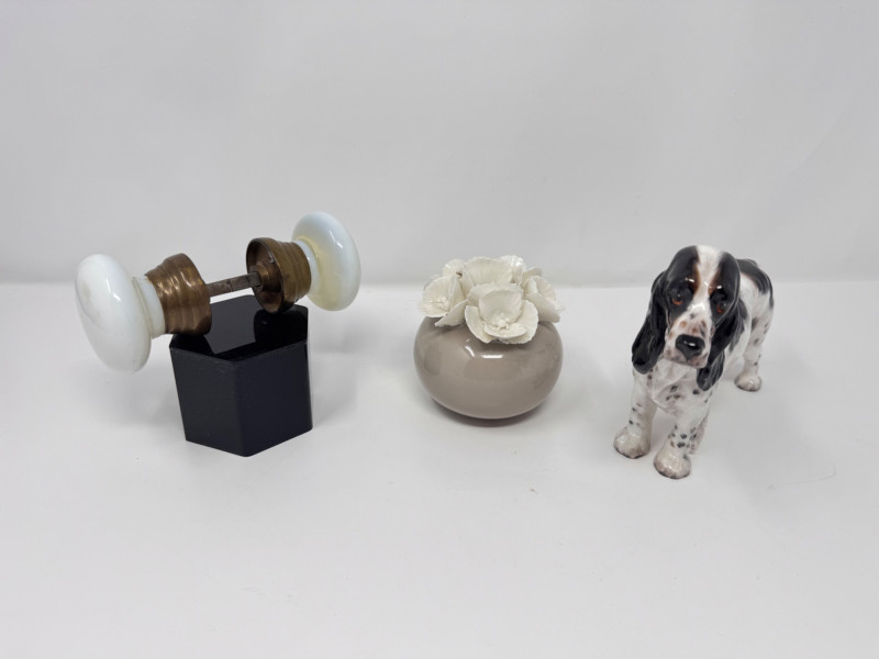 Lot # 130 - Porcelain Decor Trio: Royal Doulton Dog, Floral Vase & Glass Door Knob