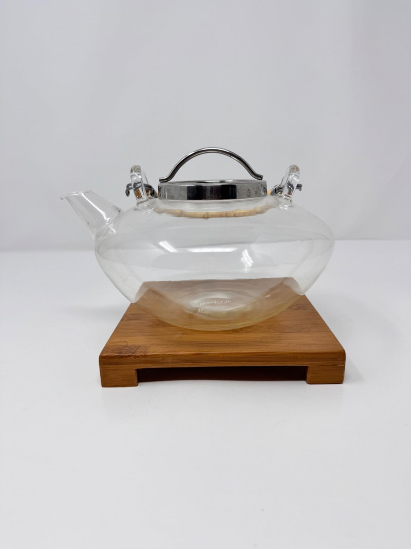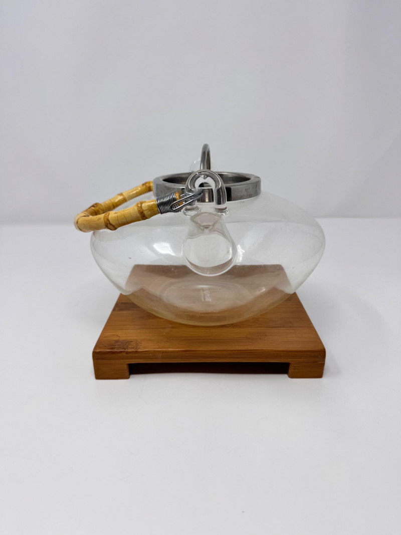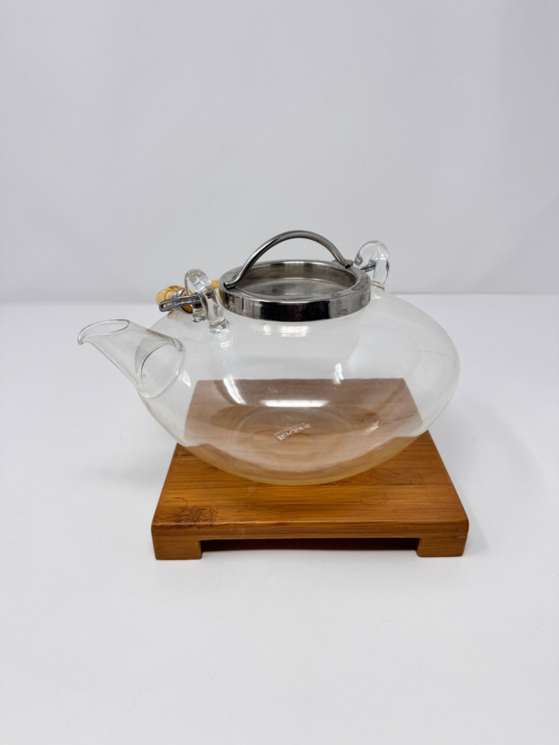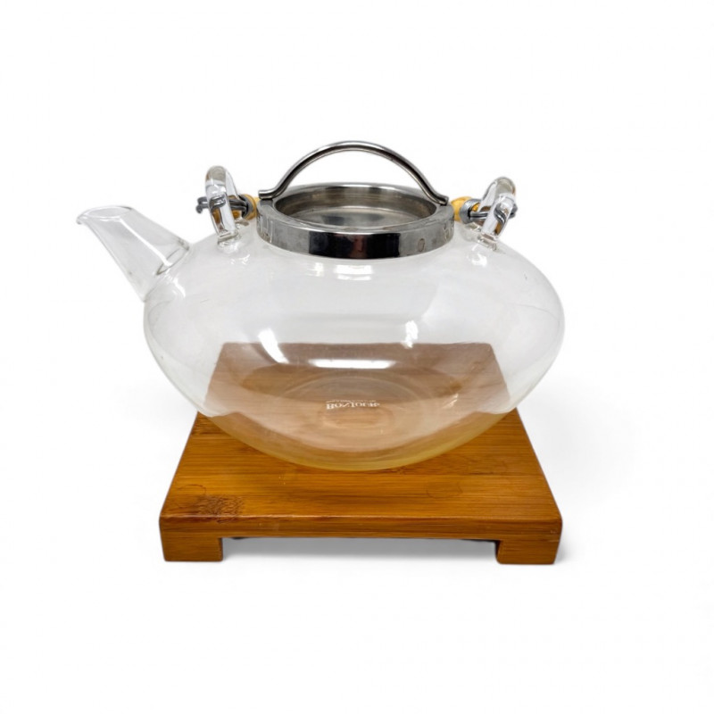 Bonjour Glass Teapot w/ Bamboo Handle & Wood Base.