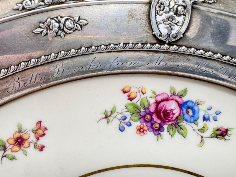 1937 Lenox Rose Plate in Engraved Silver-Plated Frame.