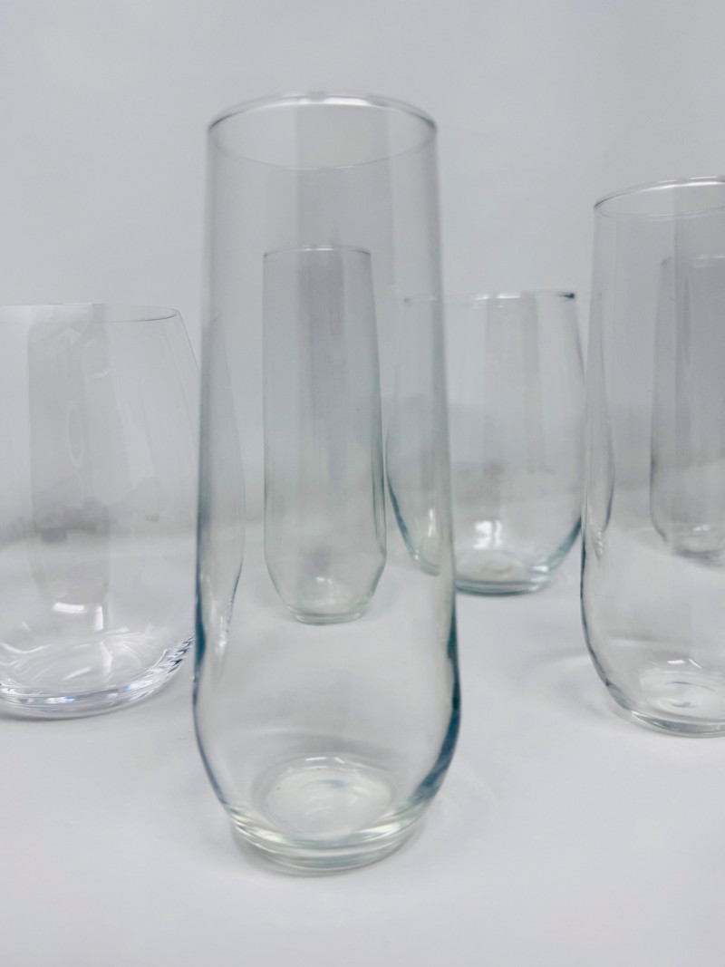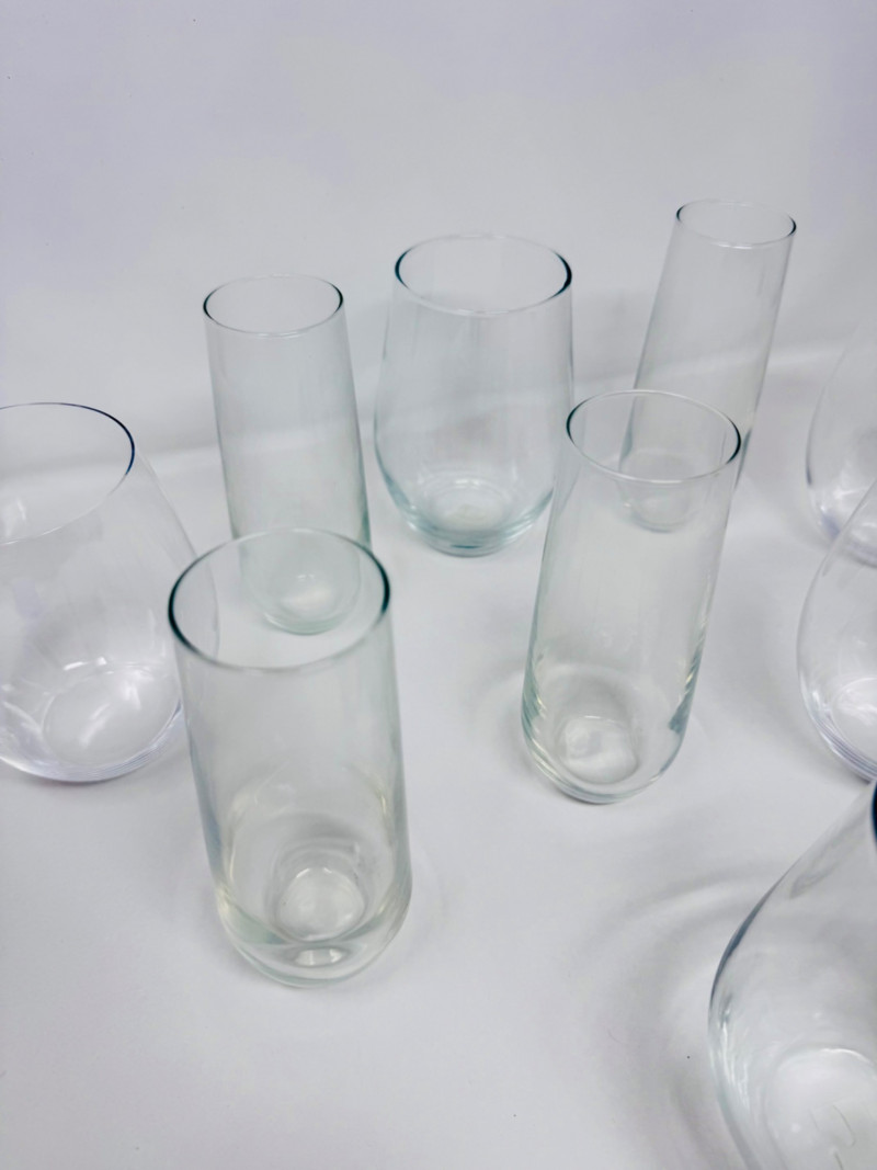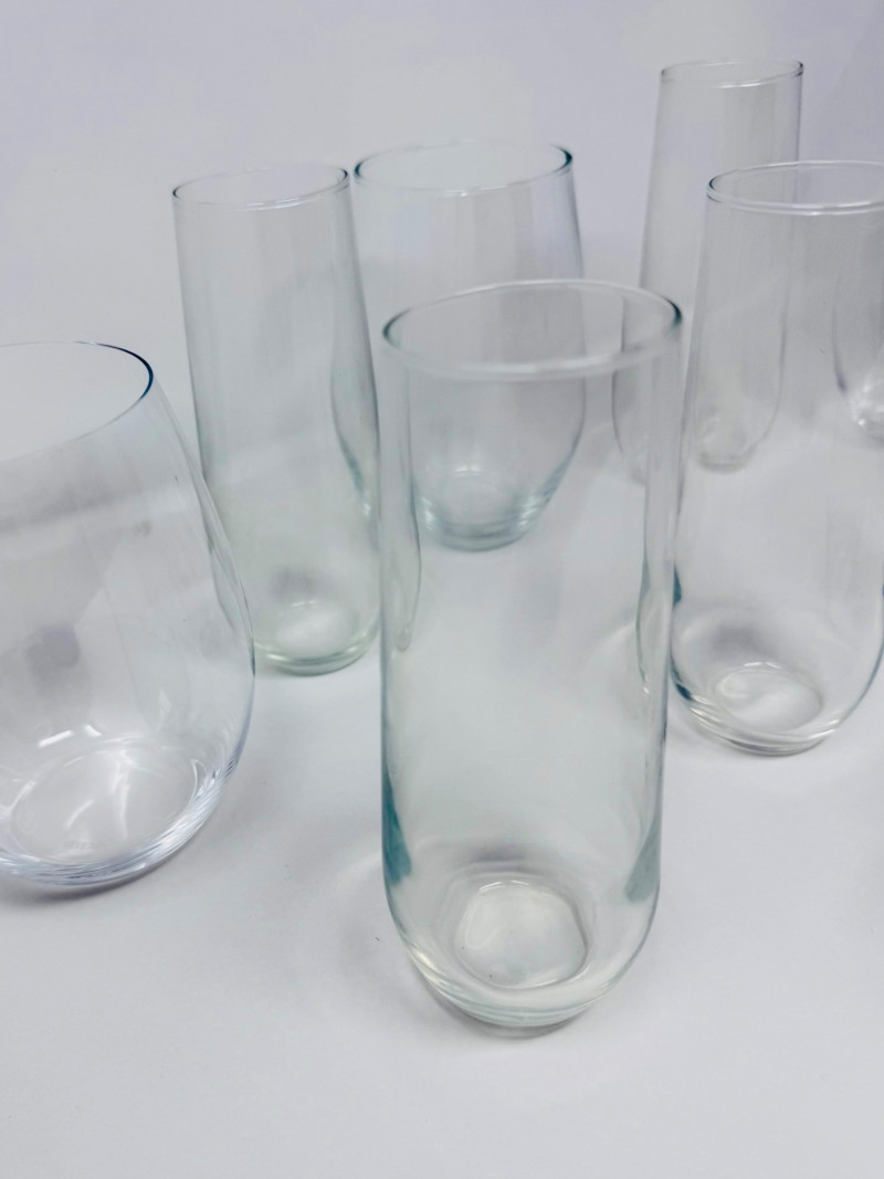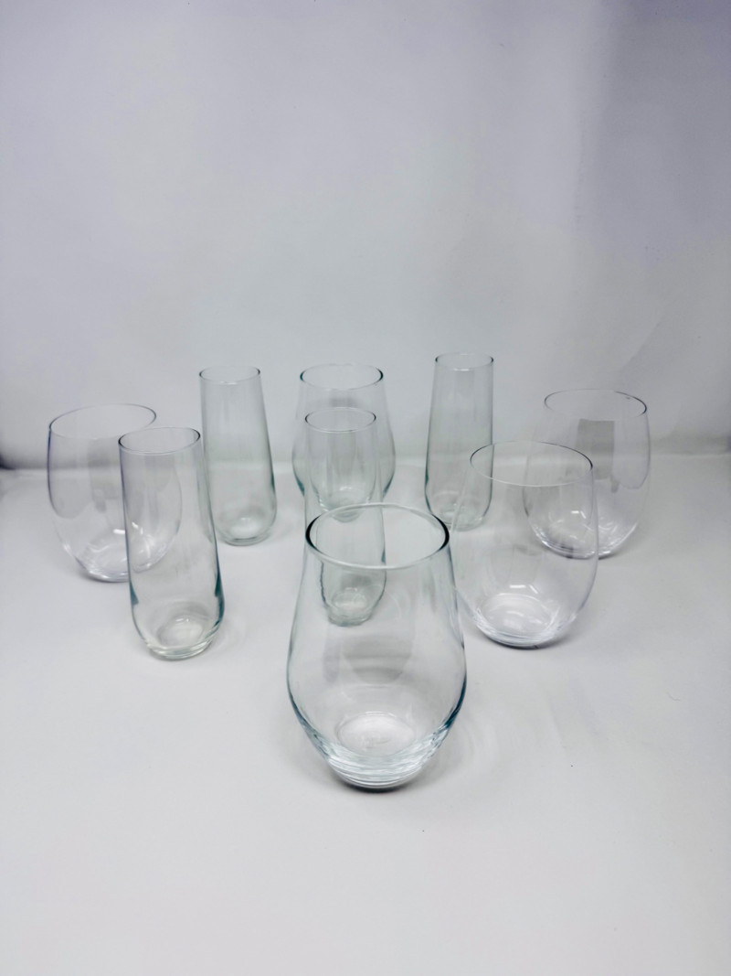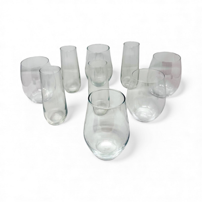 Assorted Clear Glassware, Rounded & Cylindrical Shapes – 9pcs.