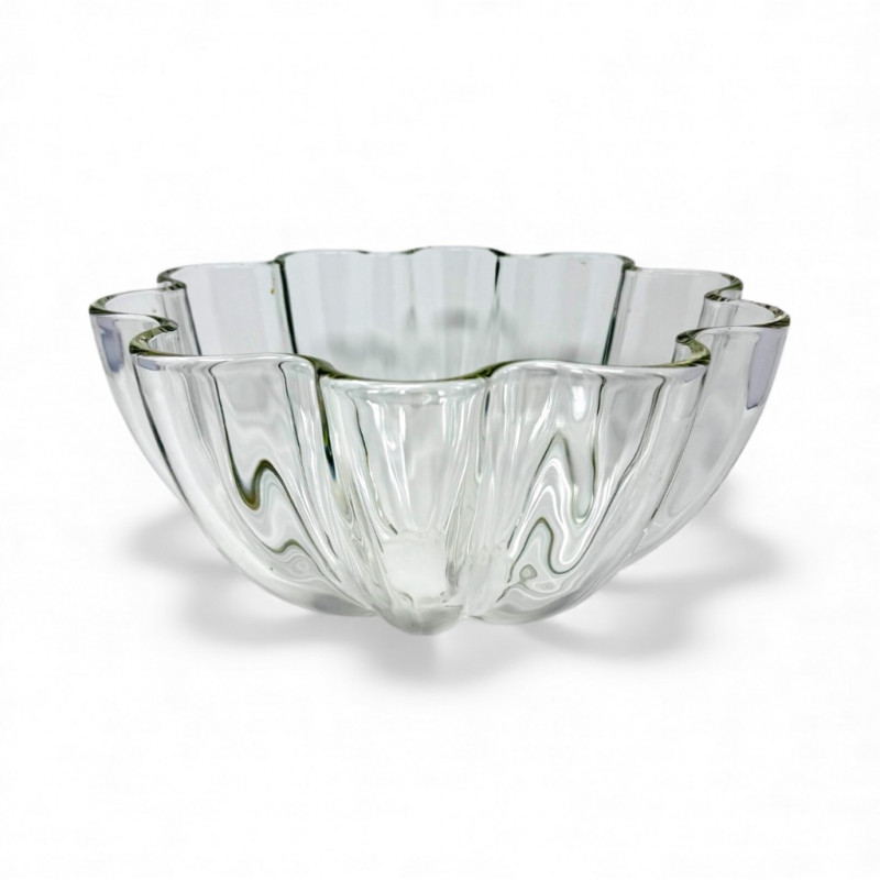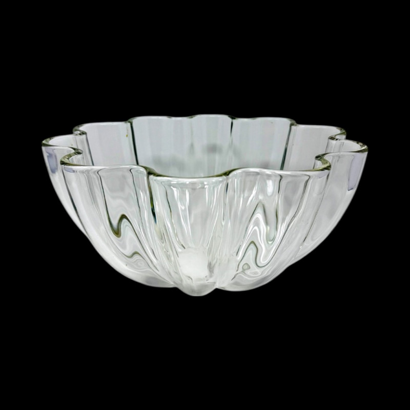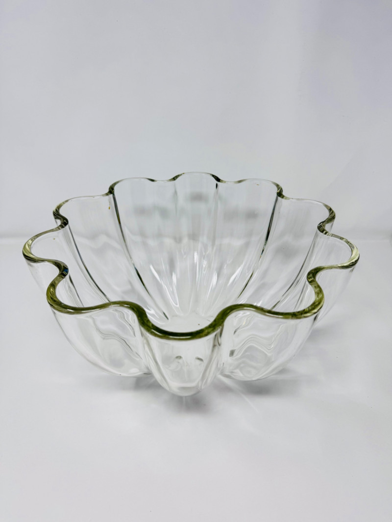 Large Clear Glass Fruit Bowl w/ Scalloped Edge Design.