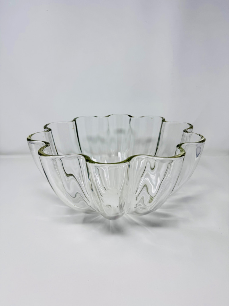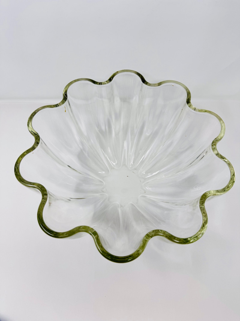 Lot # 165 - Large Clear Glass Fruit Bowl w/ Scalloped Edge Design