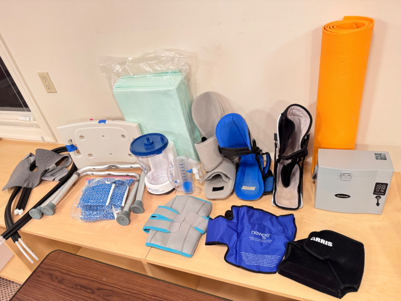 Assorted Medical Equipment Bundle w/ Table, Supports & Supplies.