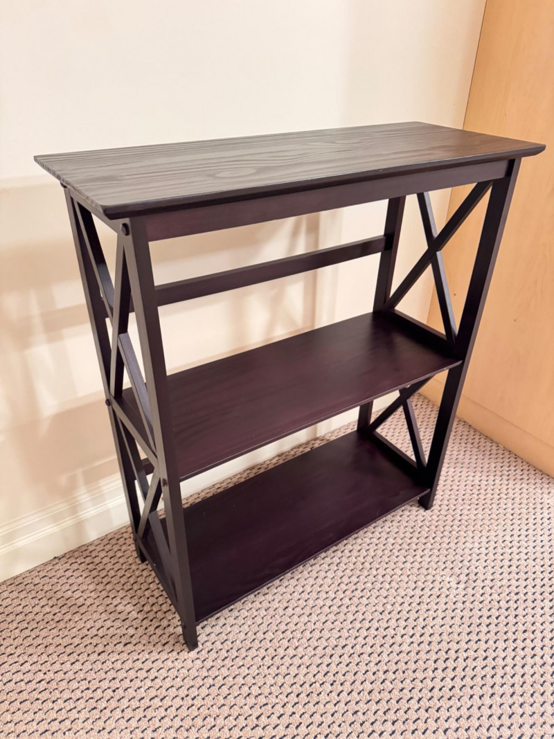Small Wood Bookshelf w/ Decorative X-Side Design.