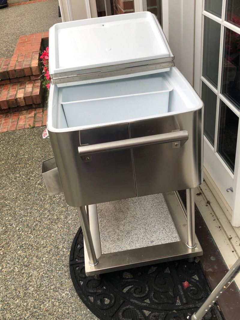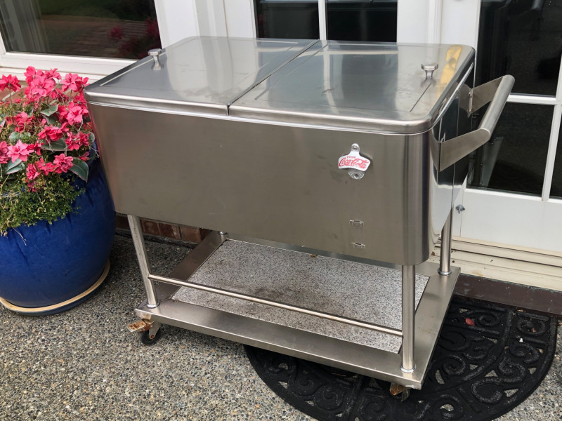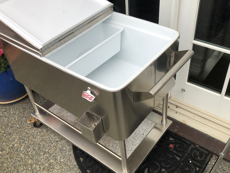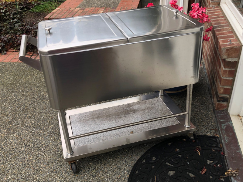 Stainless Rolling Beverage Cooler w/ Dividers, Lid & Cover.