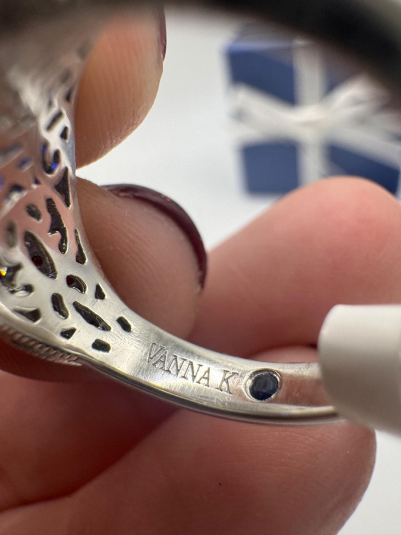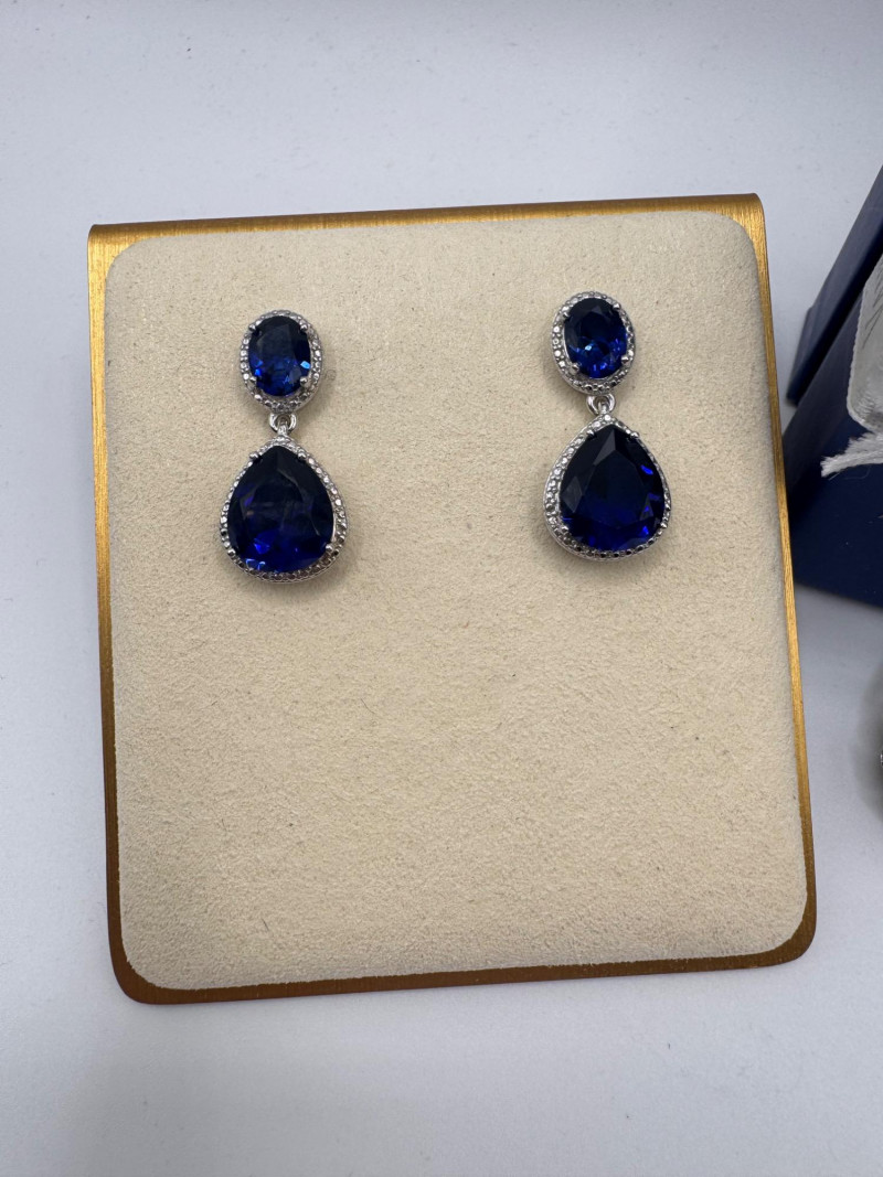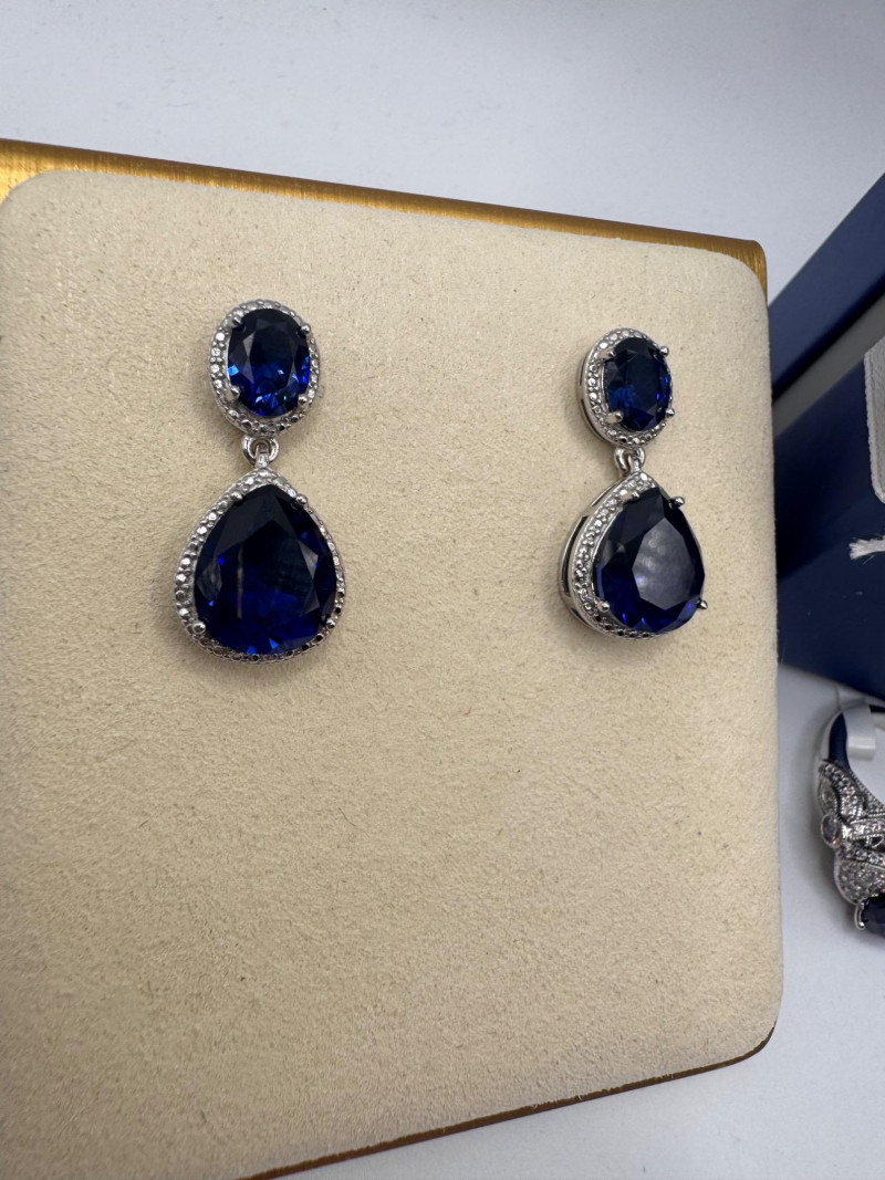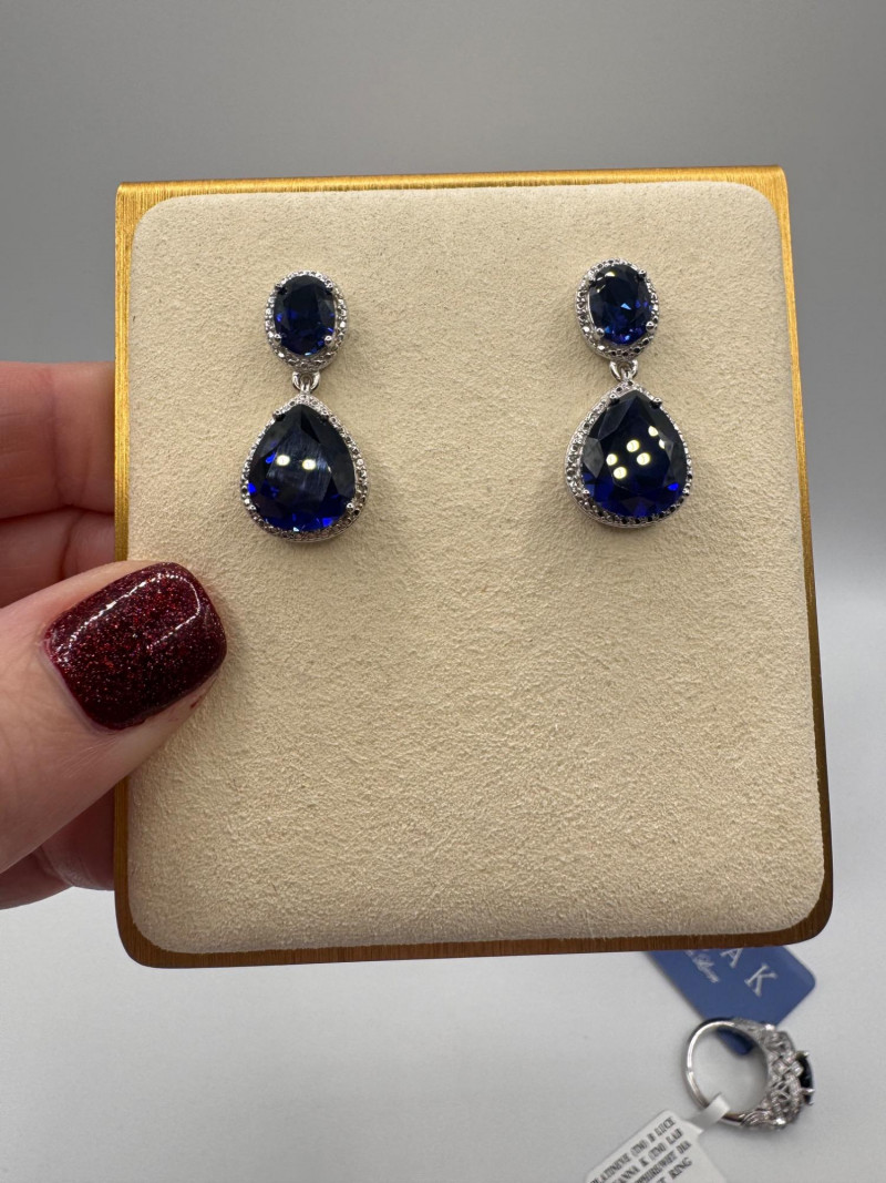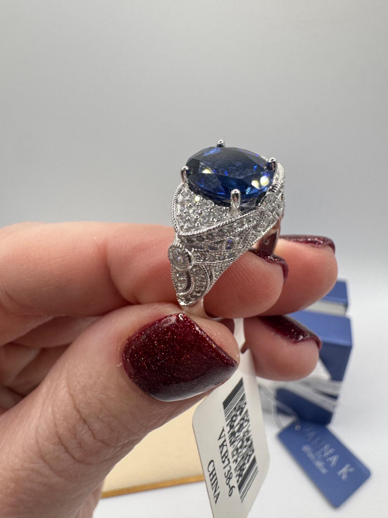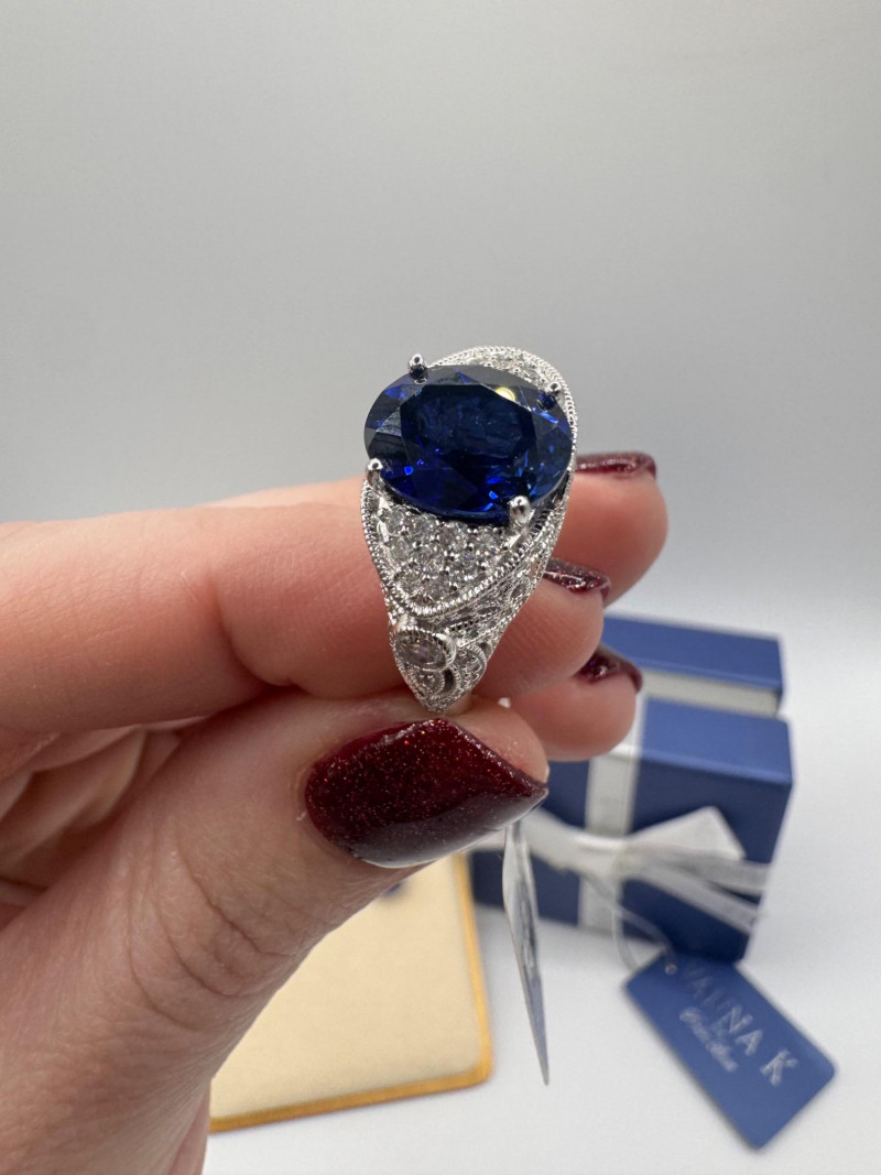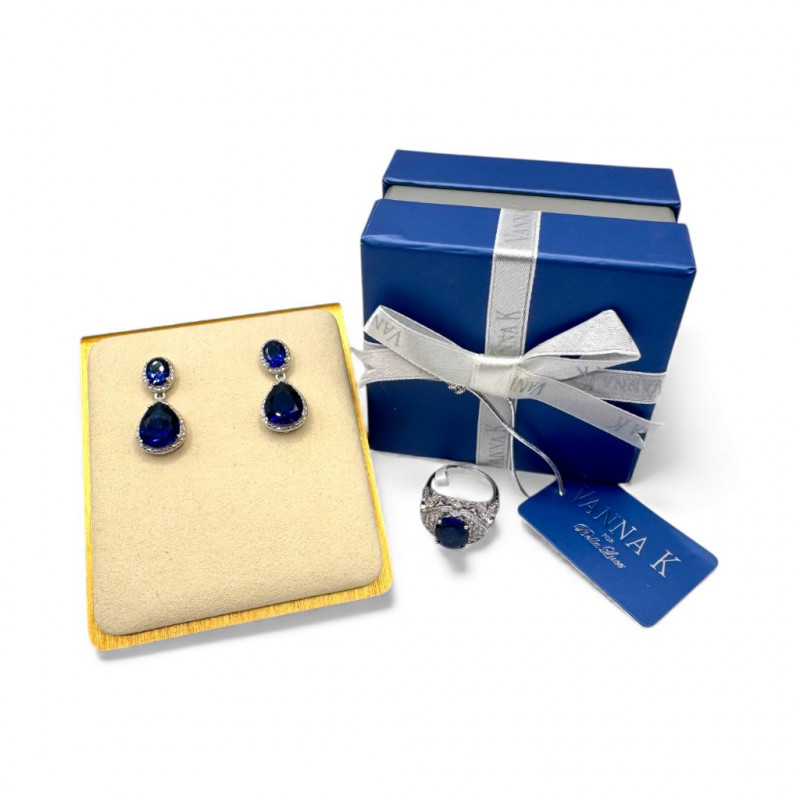 Brand New Vanna K Lab Sapphire Ring & 7.5ctw Earrings Set w/ Boxes.