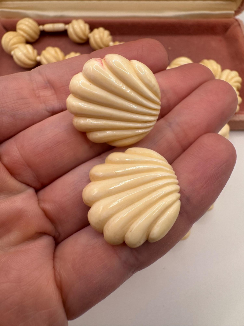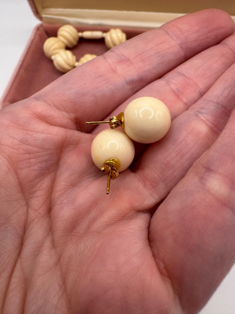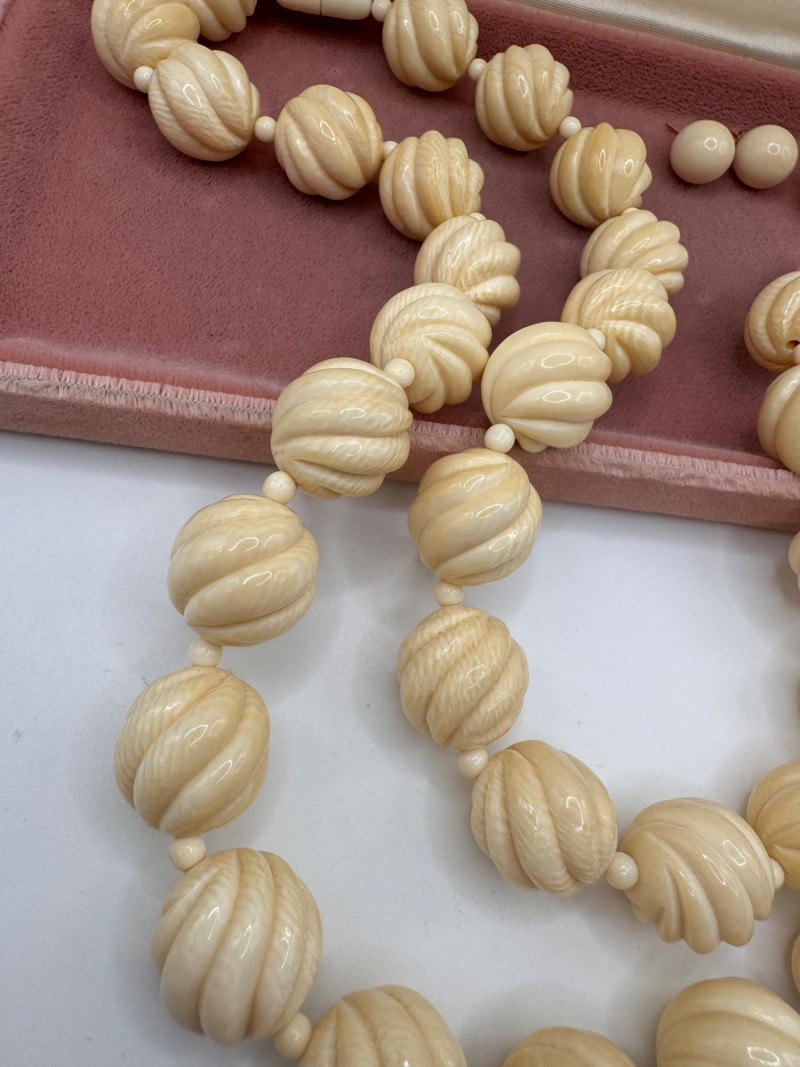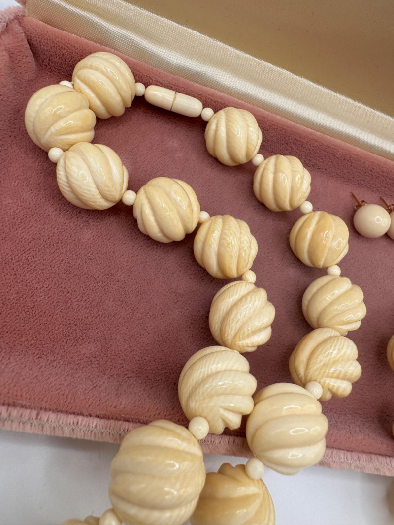 Lot # 5 - Vintage Carved Bone Necklace Set w/ Earrings & 14K Backings