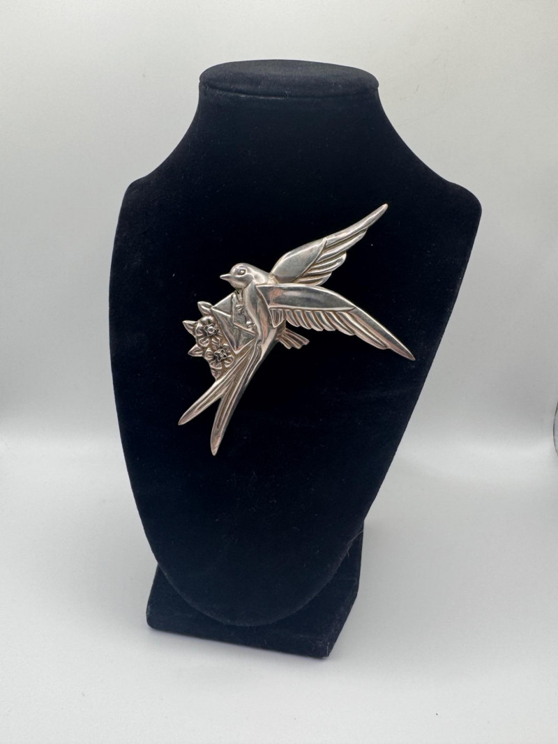 Vintage Mexican Sterling Bird Brooch Prieto E. Juarez 28.62g