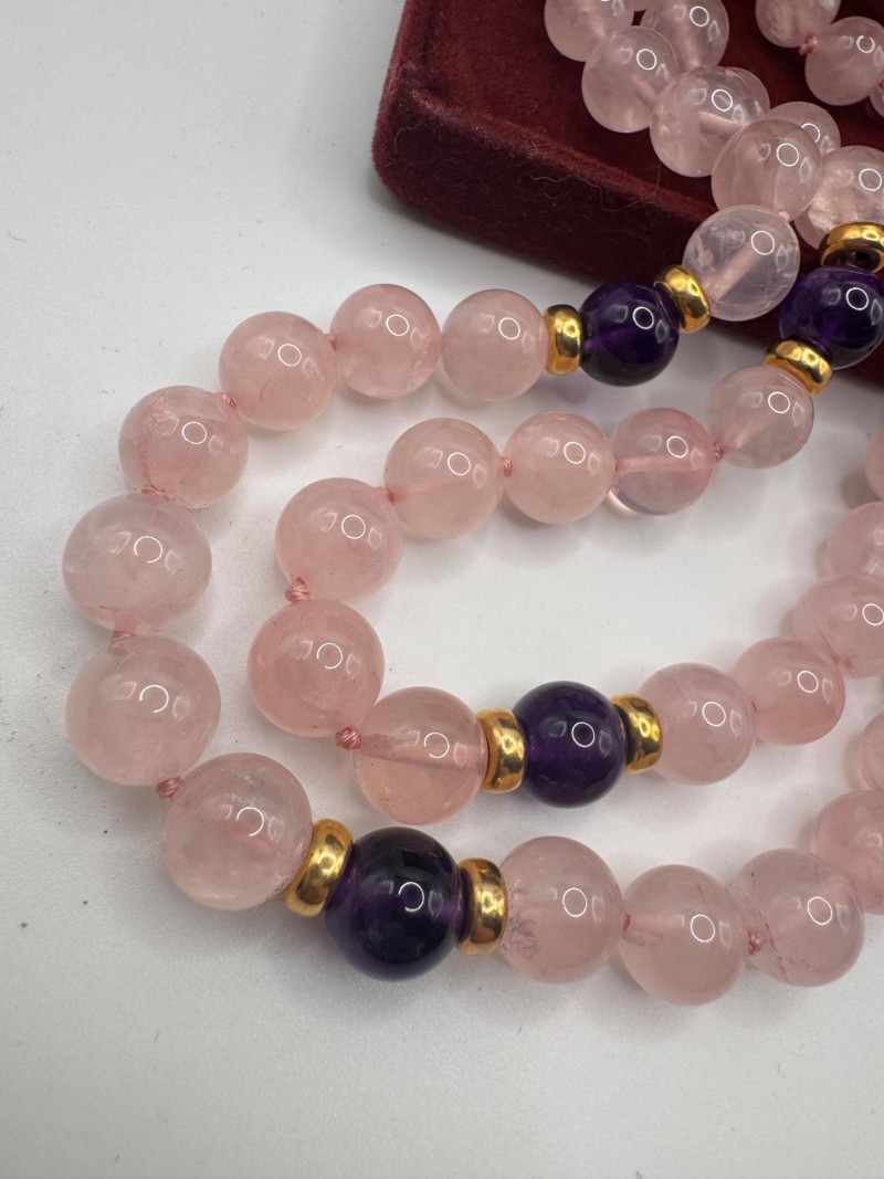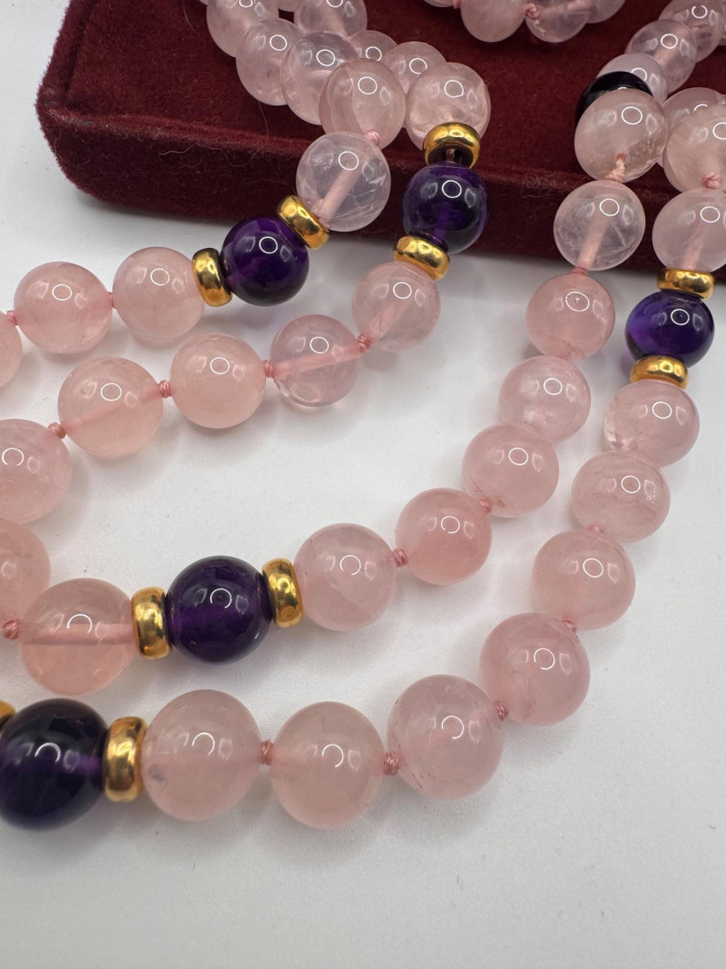 Lot # 9 - Rose Quartz & Amethyst Necklace Set w/ 14K Accents & Earrings