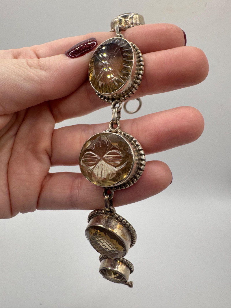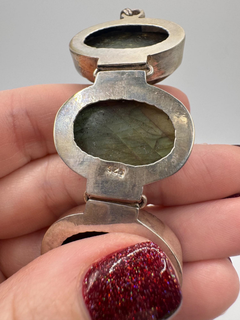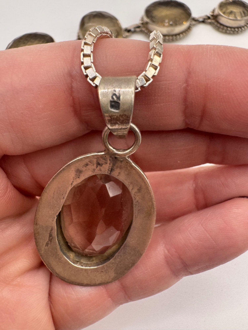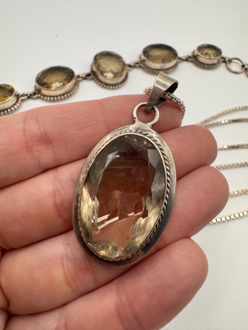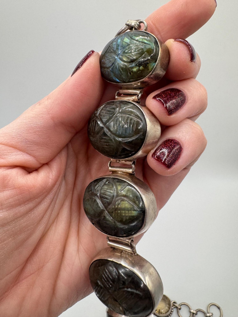 Sterling Labradorite & Smoky Glass Bracelet + Pendant 143.17g.