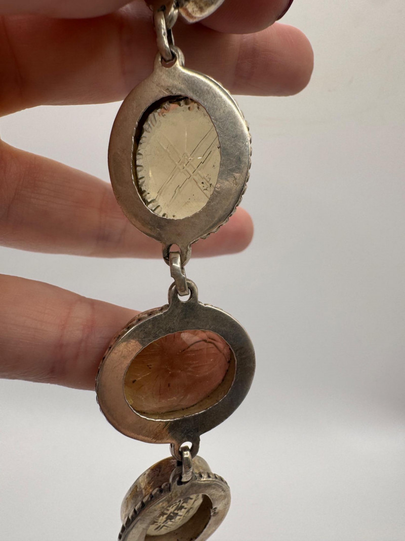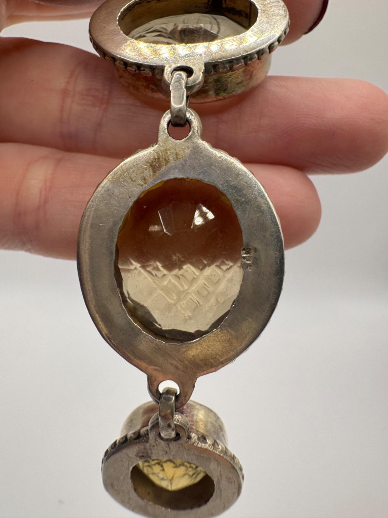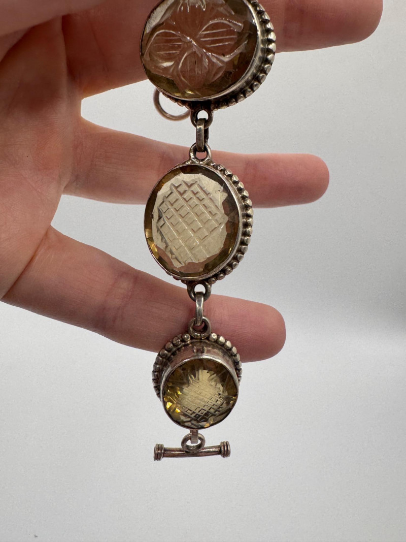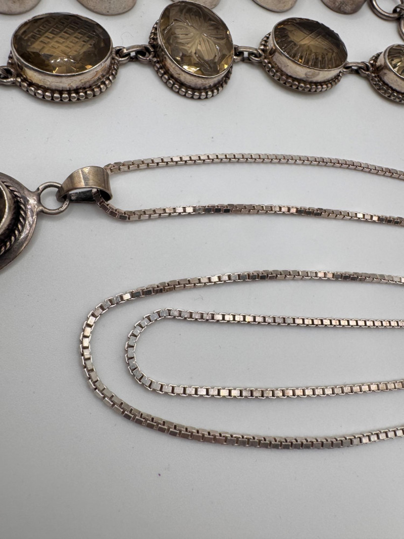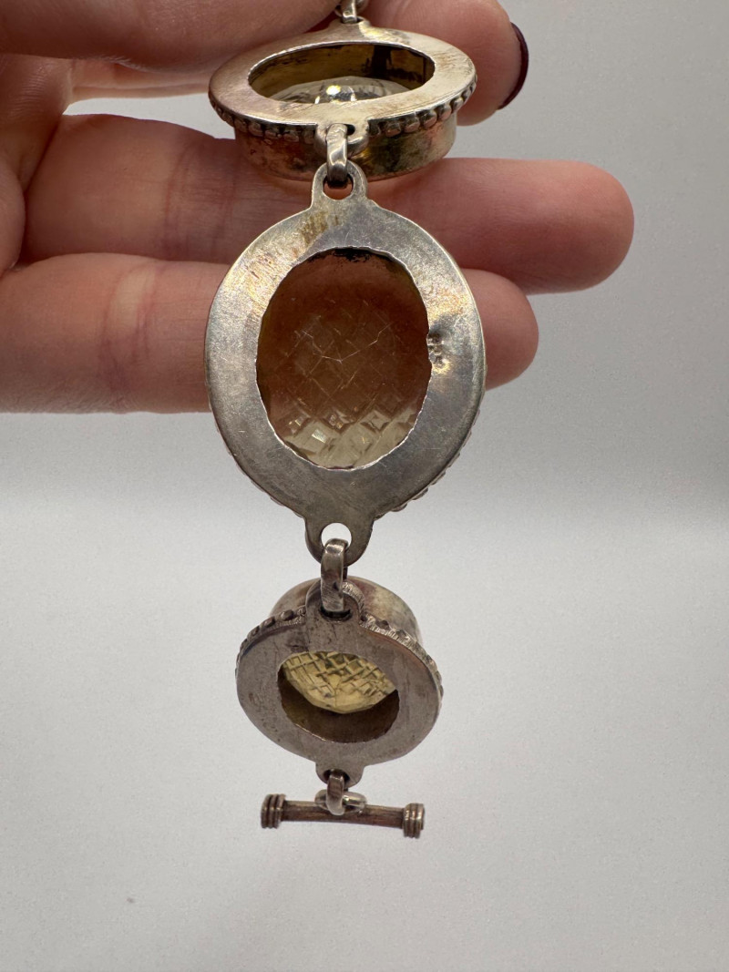 Sterling Labradorite & Smoky Glass Bracelet + Pendant 143.17g.