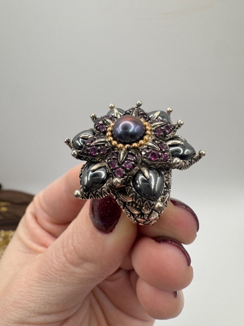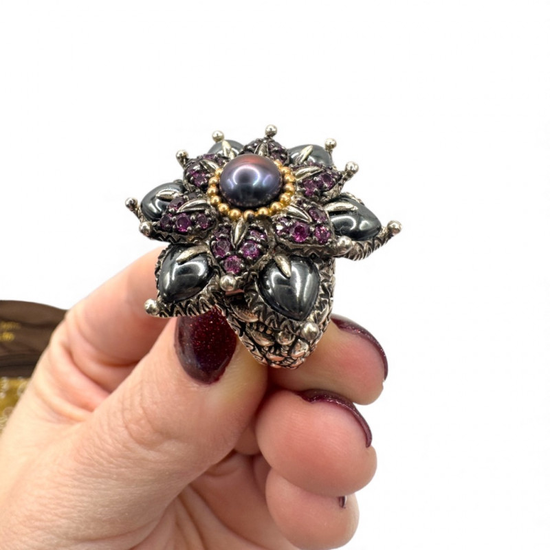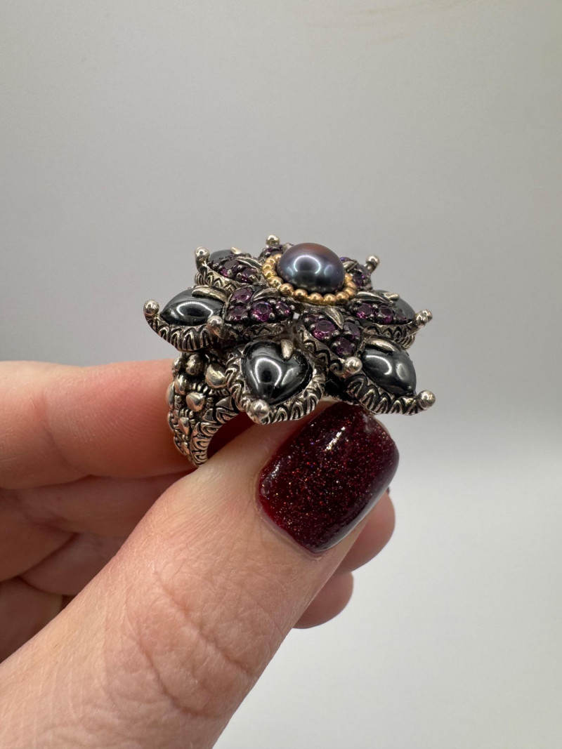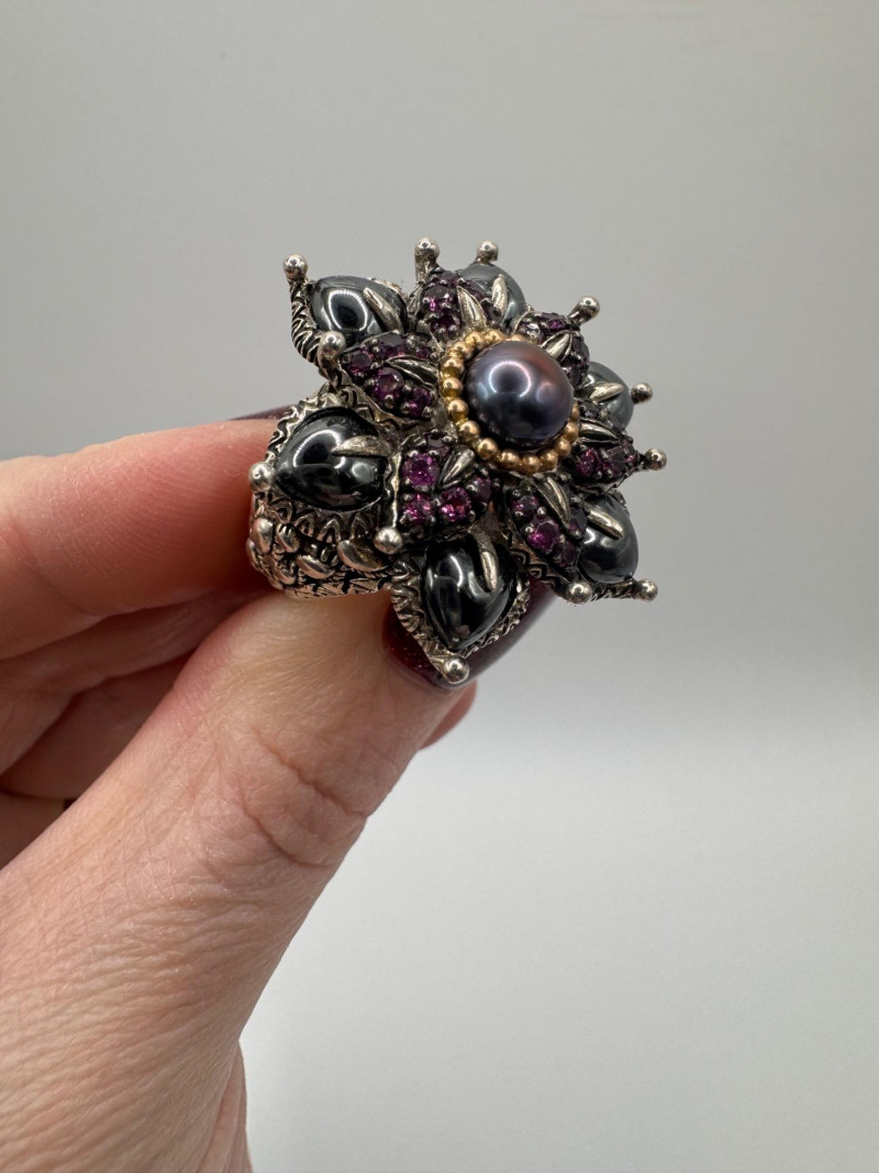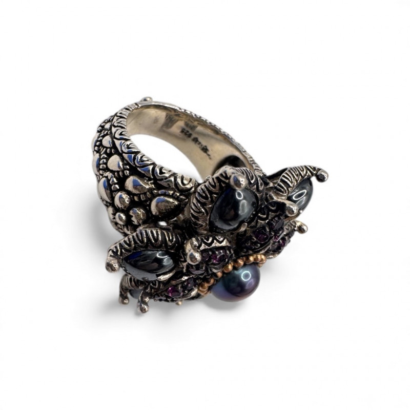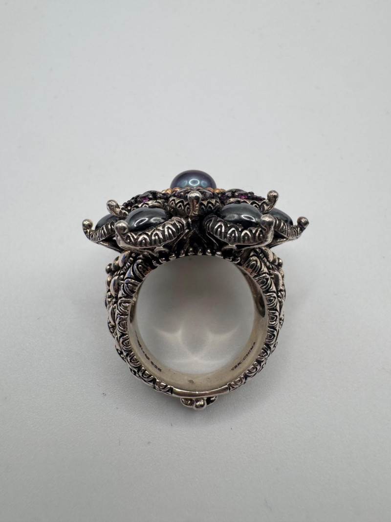 Lot # 13 - Barbara Bixby Sterling & 18K Rose Gold Multi-Gemstone Flower Ring