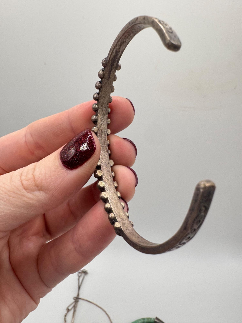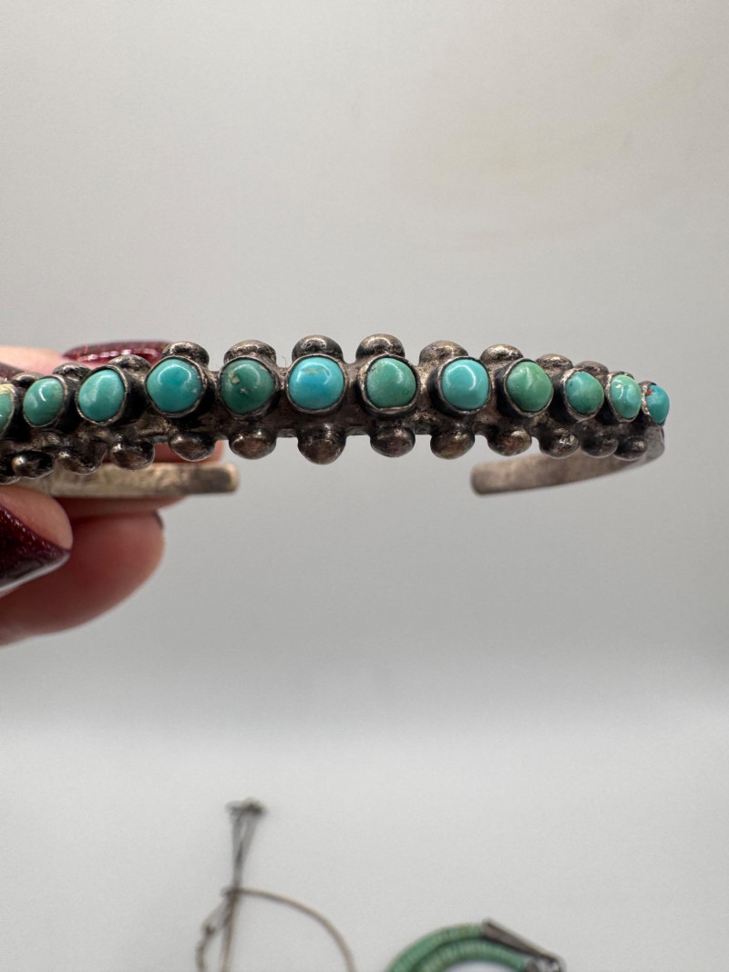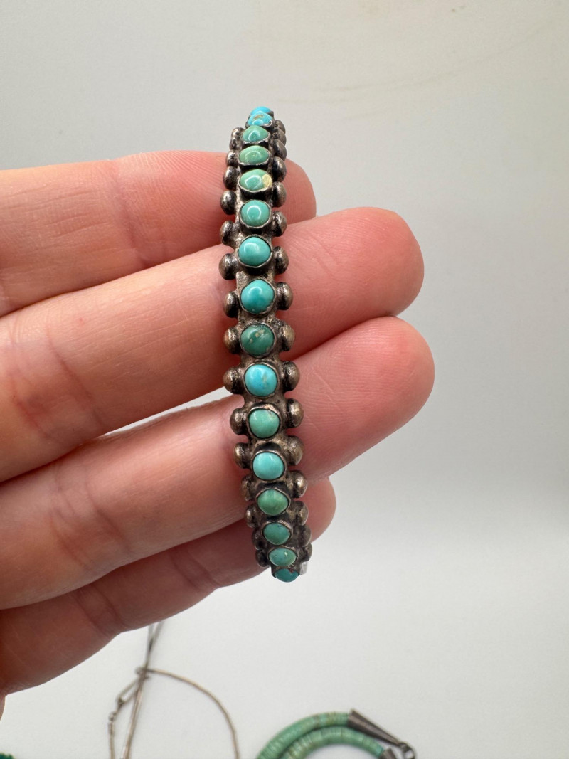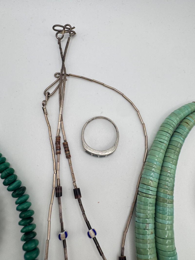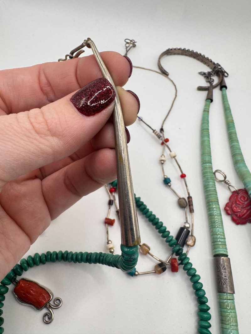 Green Lapis Pendant, Rose Pendant & Sterling Silver Earrings. Note: Only the earrings are marked sterling. All other metals are untested and sold as unknown. General Disclaimer:All items are sold as-is. Jewelry, metals, gemstones, and other minerals have not been tested unless specifically noted. No guarantees are made regarding metal content, gemstone type, or origin. Refunds will not be issued based on identification, classification, or perceived quality.