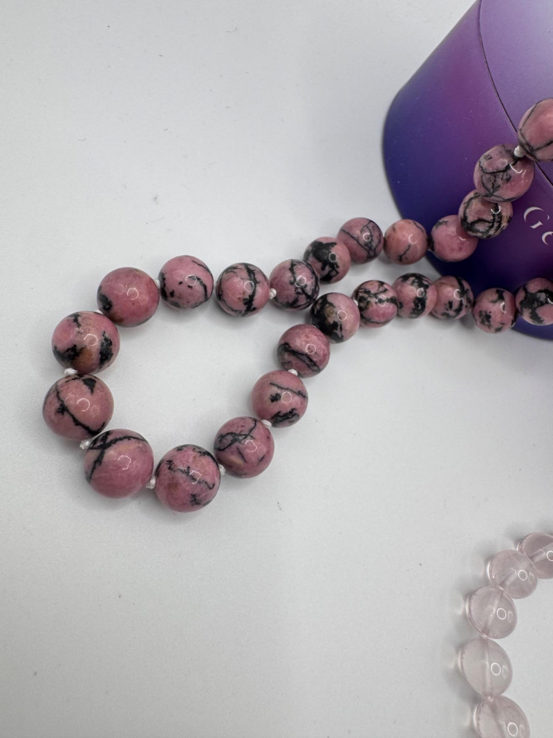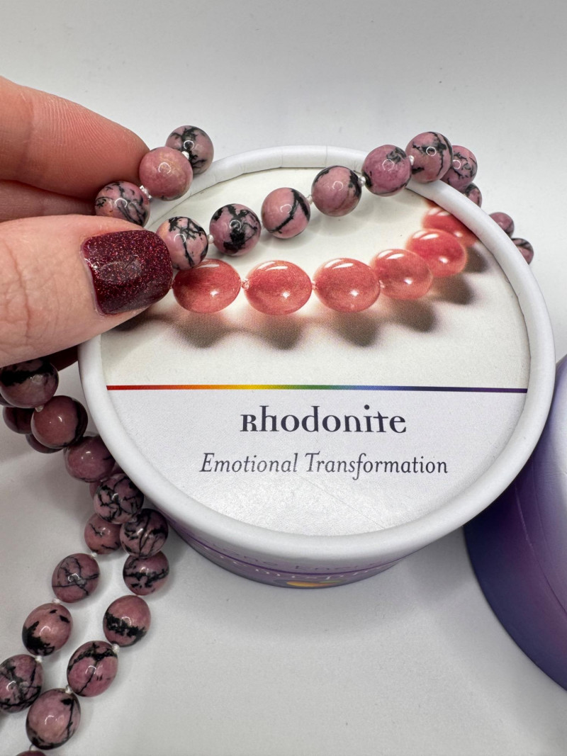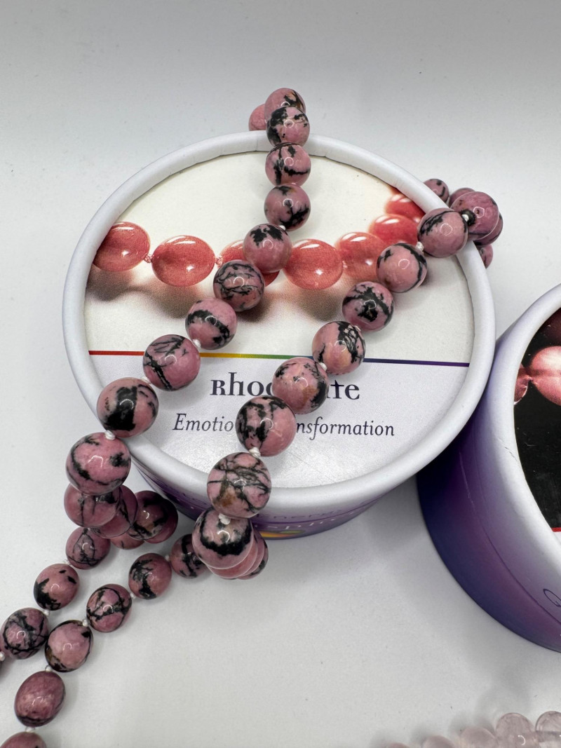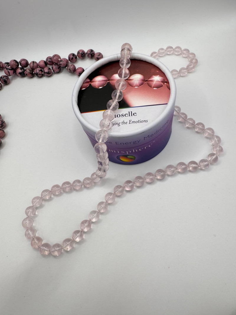 Gemisphere Gemstone Energy Medicine Necklaces – Roselle & Rhodonite #3. Roselle – 8mm, 27” Rhodonite – 10mm, 27” General Disclaimer: All items are sold as-is. Jewelry, metals, gemstones, and other minerals have not been tested unless specifically noted. No guarantees are made regarding metal content, gemstone type, or origin. Refunds will not be issued based on identification, classification, or perceived quality.