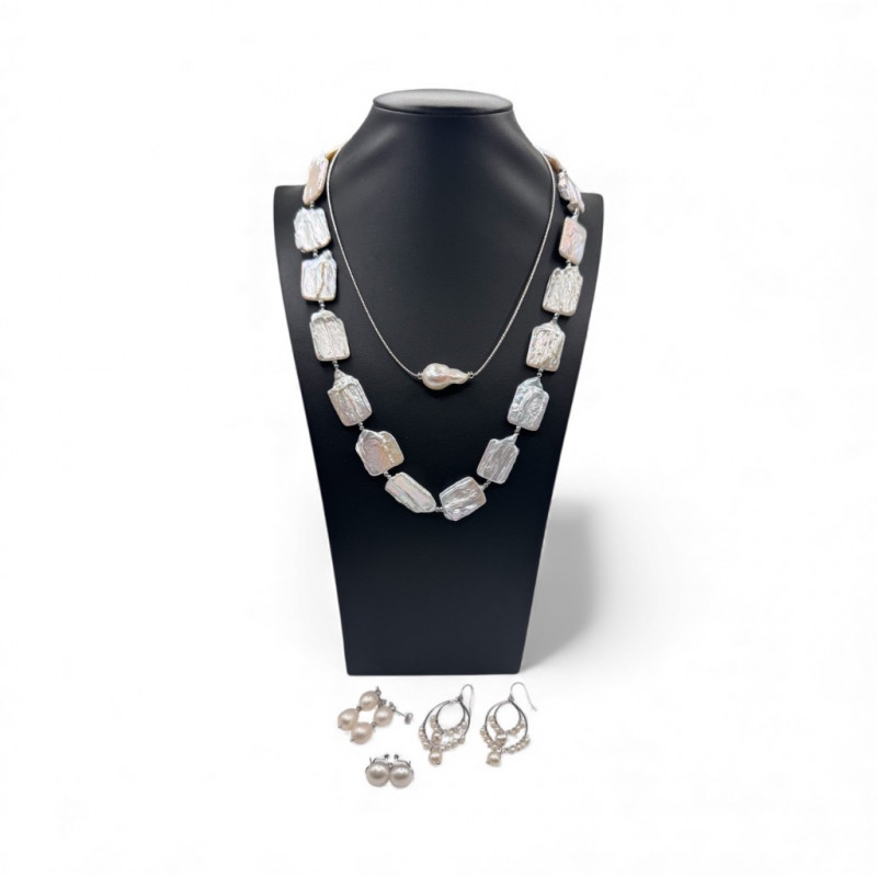 JTV Freshwater Pearl Jewelry Lot – Sterling & Rhodium Over Sterling.
