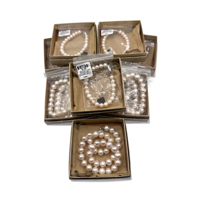 Lot # 30 - Freshwater Pearl Necklace & 11 Stretch Bracelets – New in Boxes