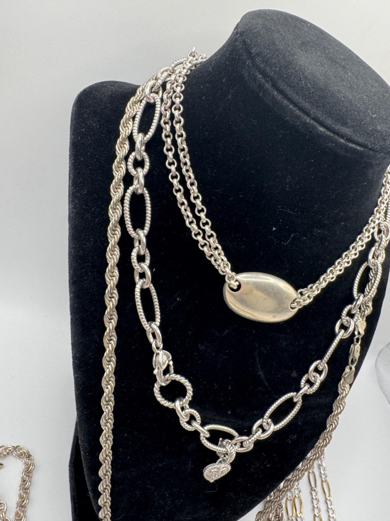 Lot # 34 - Mixed Sterling Silver Necklace Chains w/ Judith Ripka Pendant 269.59g